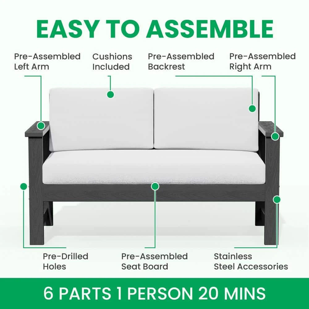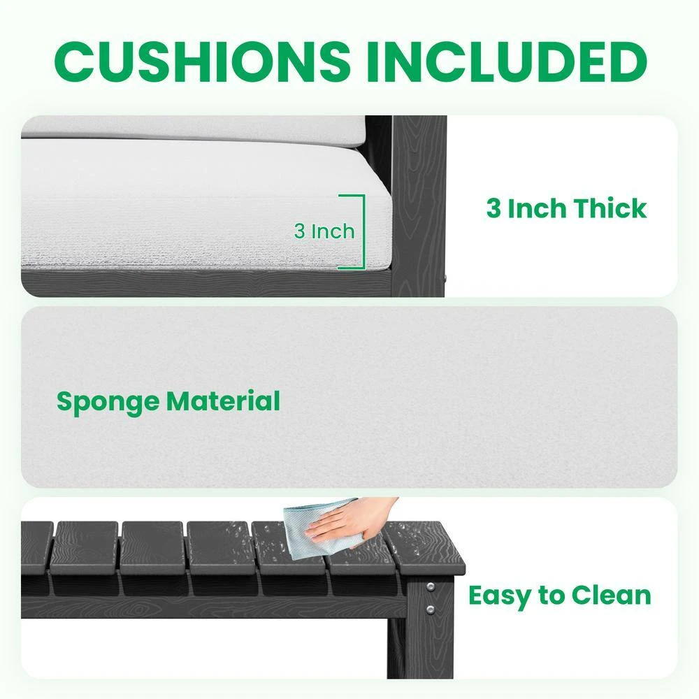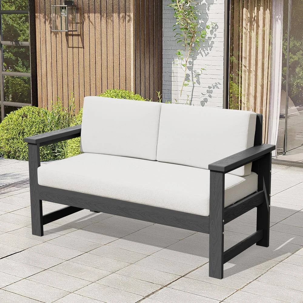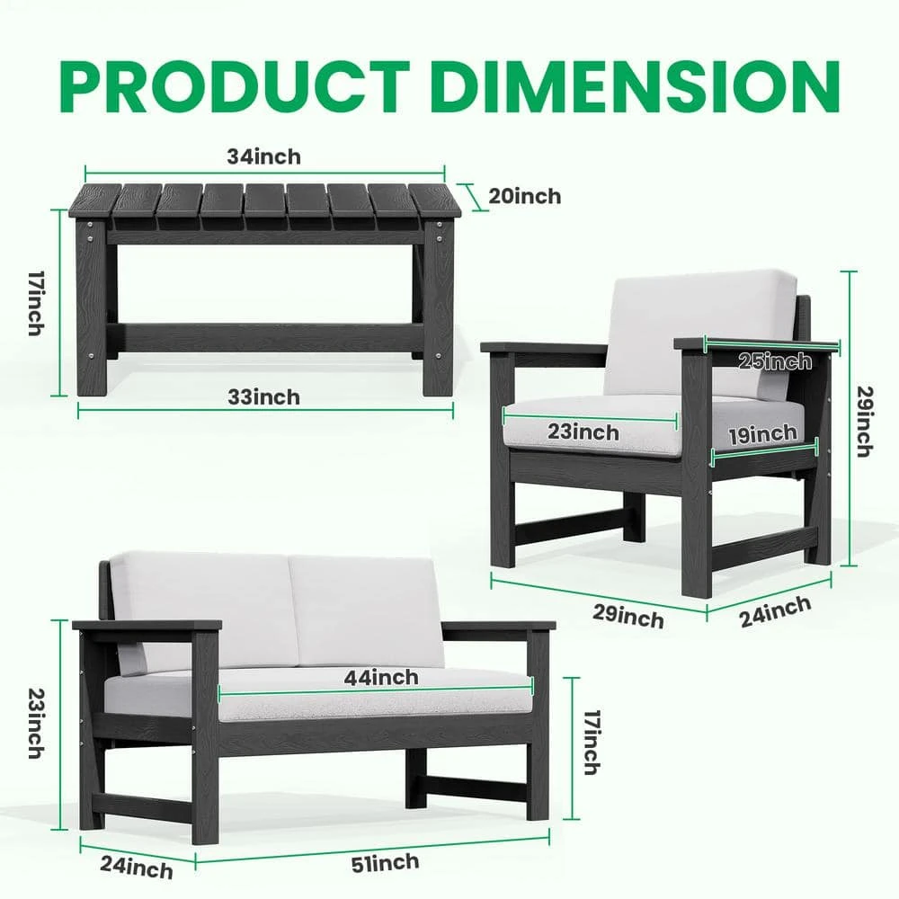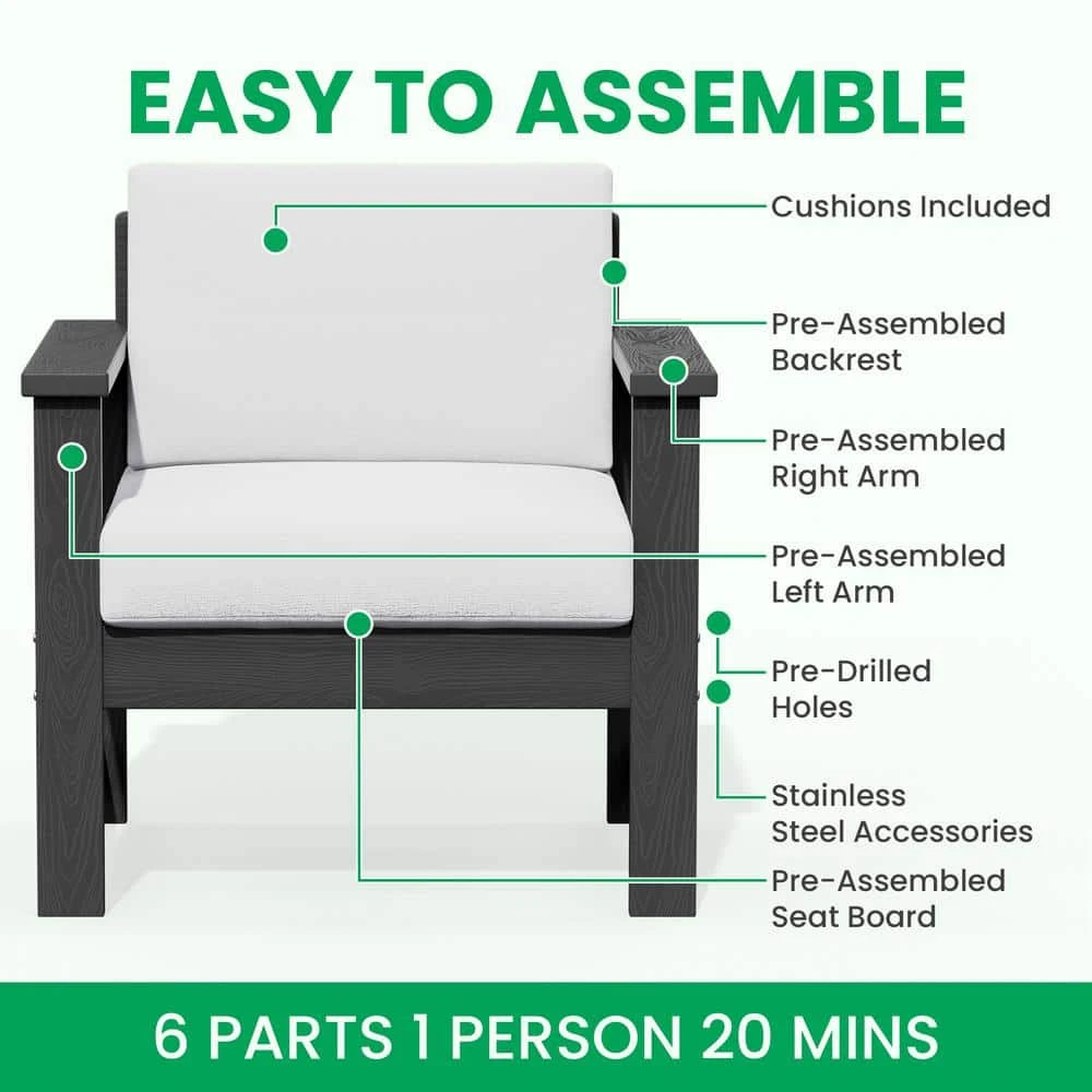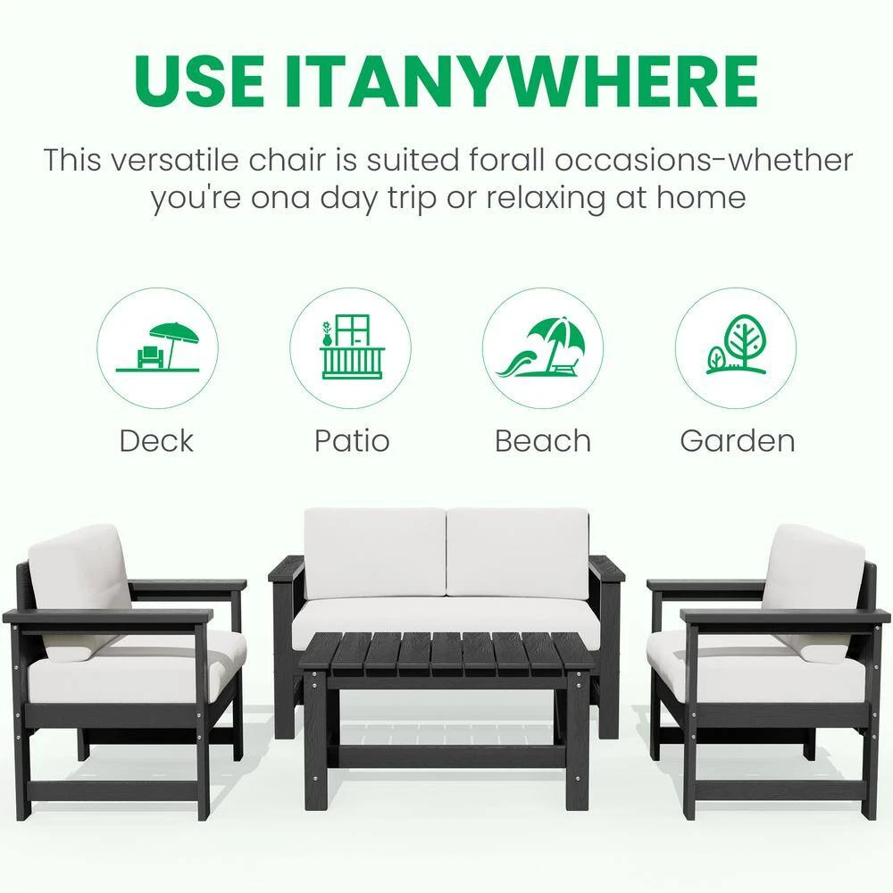 Grey 4-Piece HDPE Plastic Patio Conversation Set With Beige Cushions