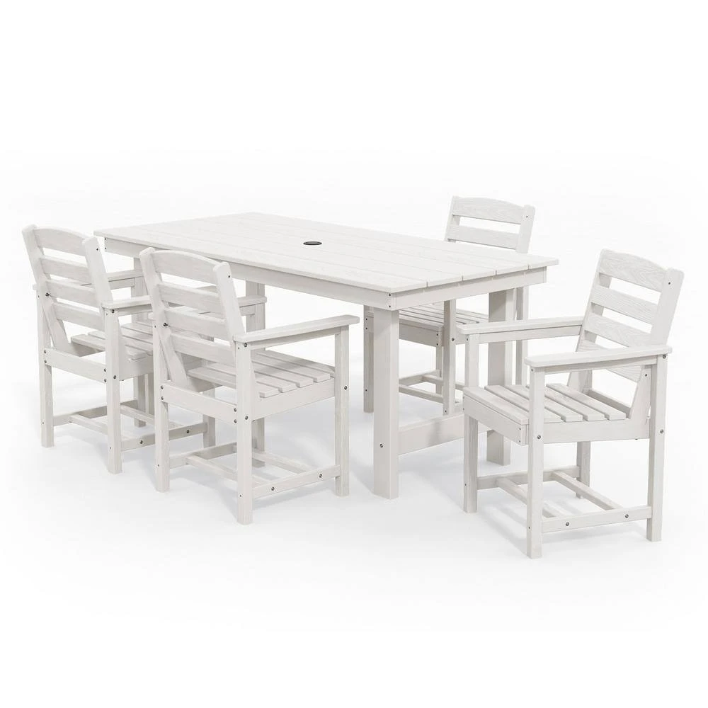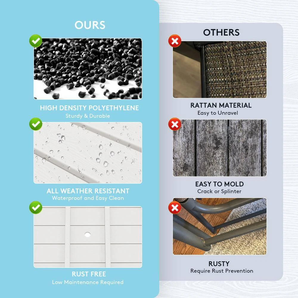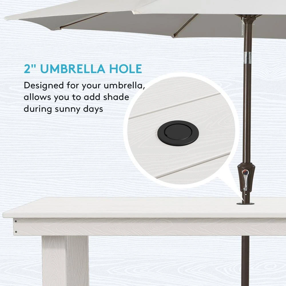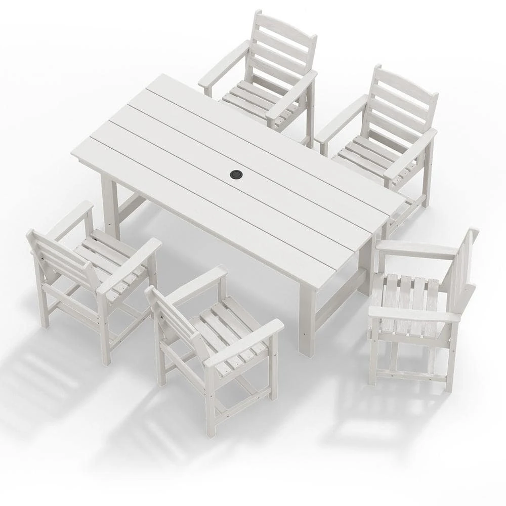 HDPE 7-Piece Plastic Rectangle Table Standard Height Outdoor Dining Set In White