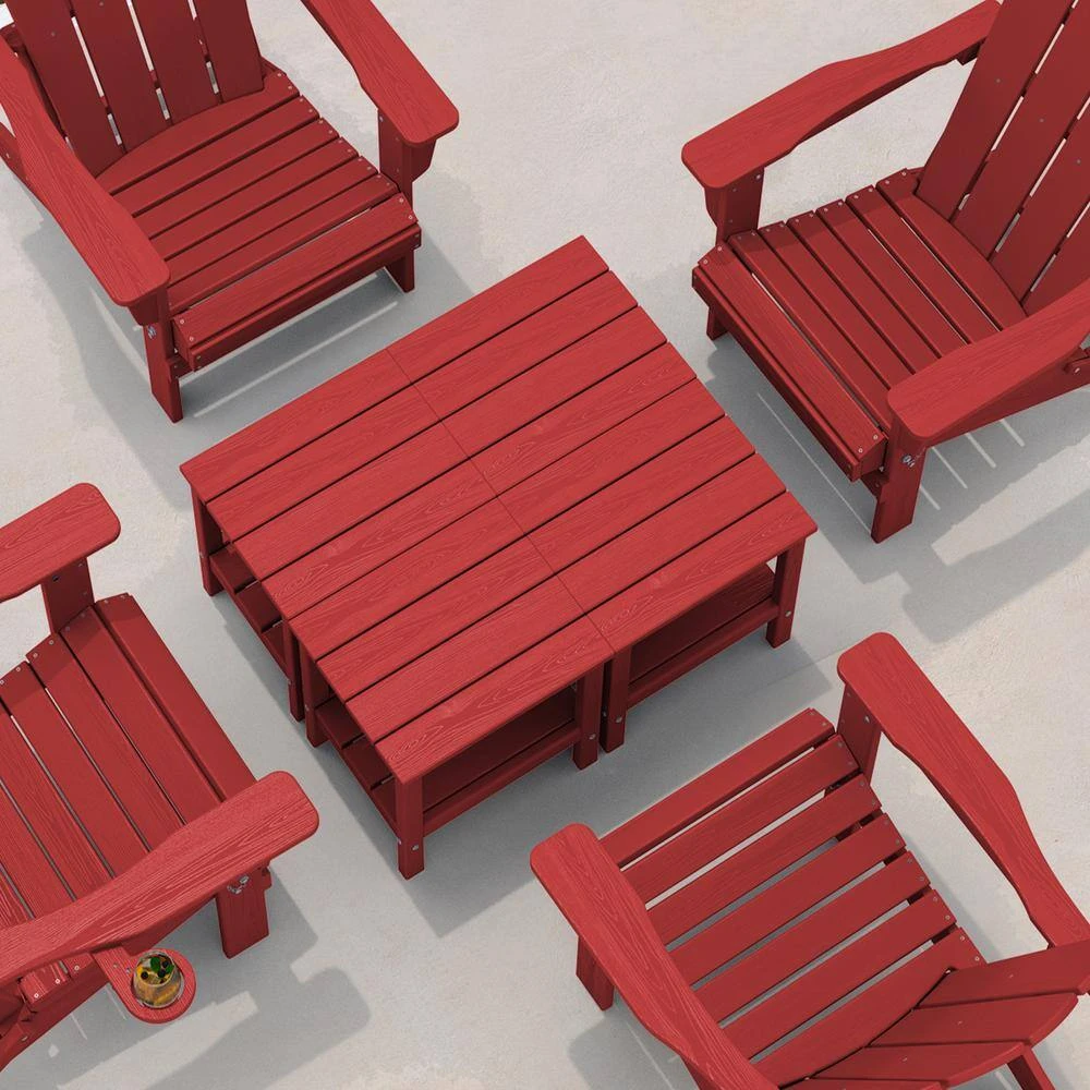 HDPE Adirondack Rectangle Plastic Outdoor Side Table In Red