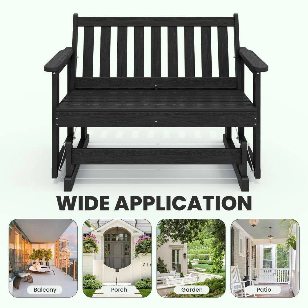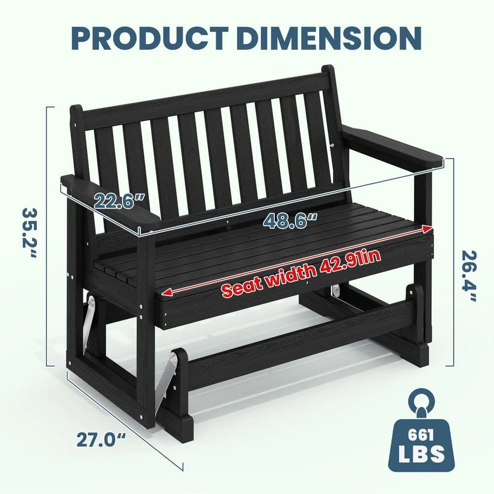 - Low maintenance: the HDPE material is resistant to fading, staining, and cracking, making it easy to clean and maintain this glider is made to resist moisture, UV rays, and temperature changes, keeping it durable and reliable in any weather condition ensuring your glider stays looking great for years