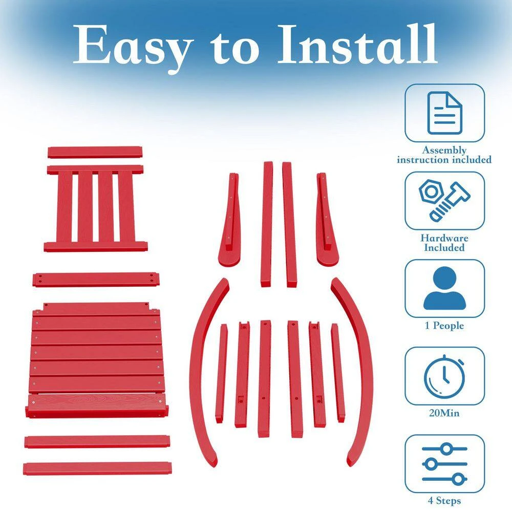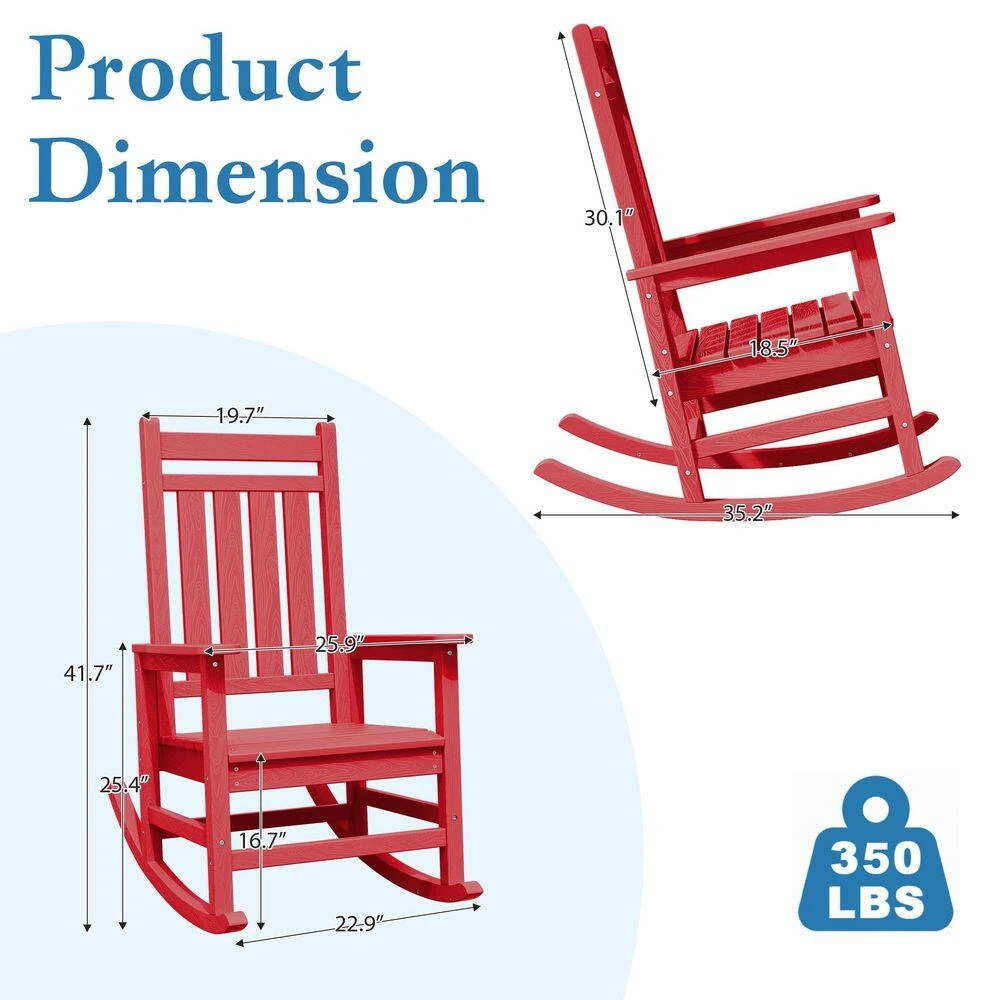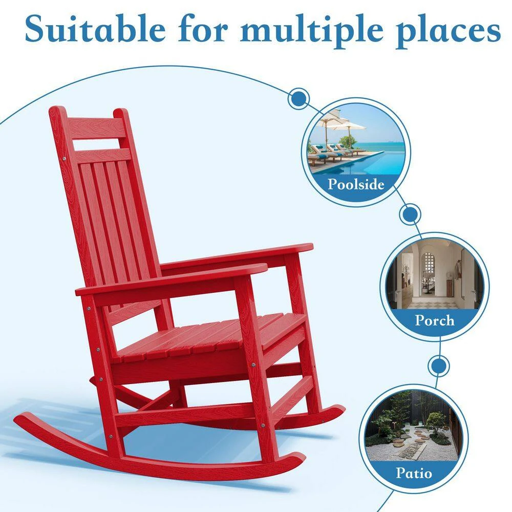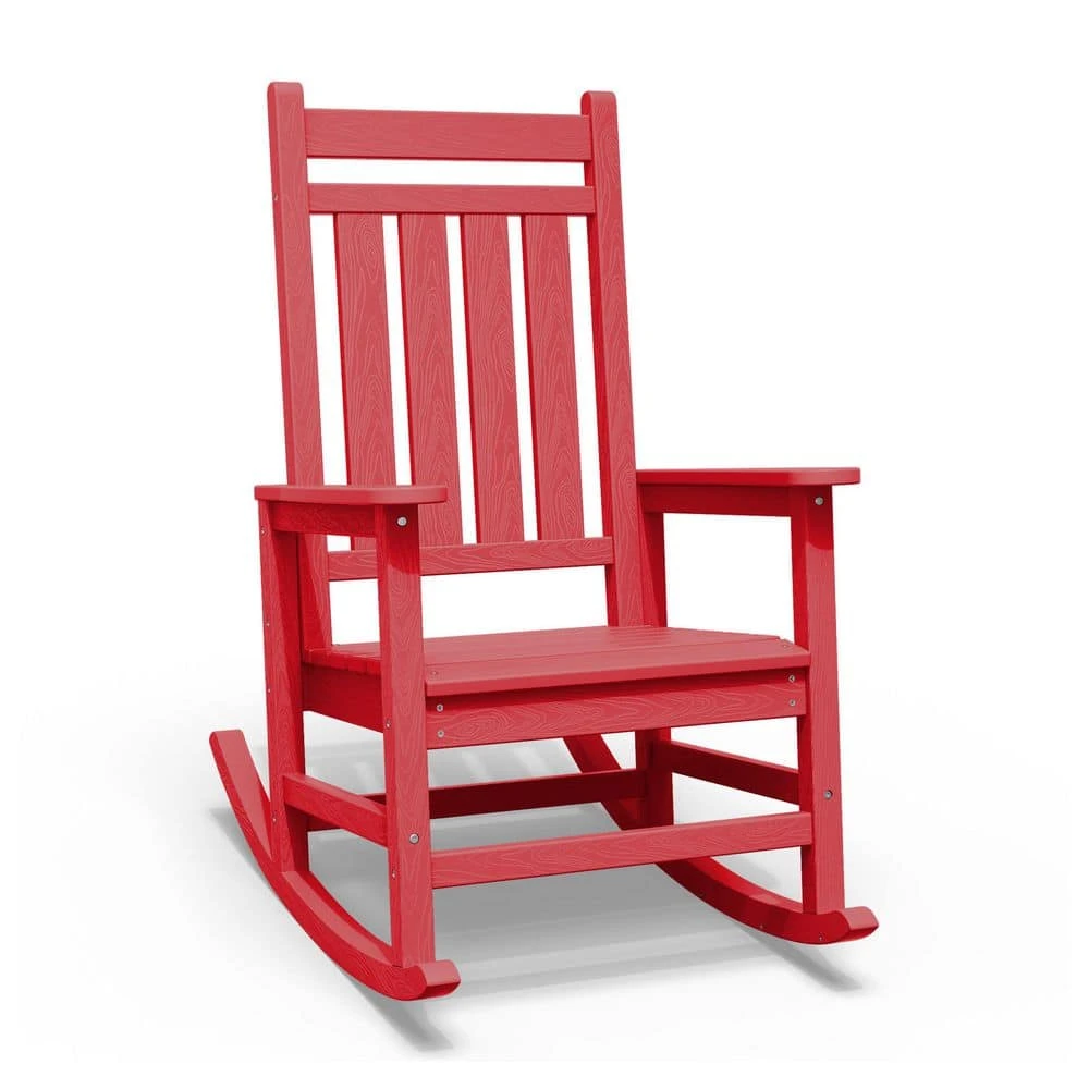 HDPE Bright Red Adirondack Rocking Chair (1-Pack)
