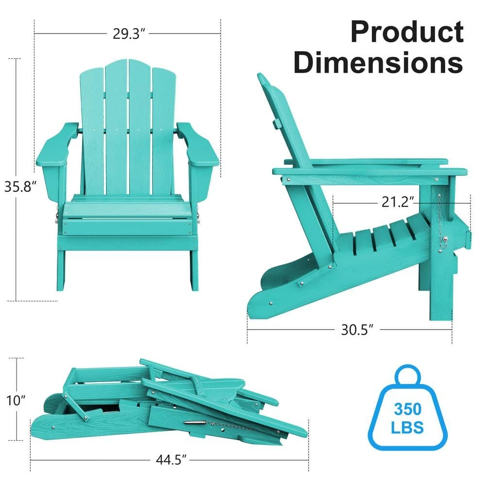 HDPE Classic Aruba Blue Folding Plastic Adirondack Chair (1-Pack)