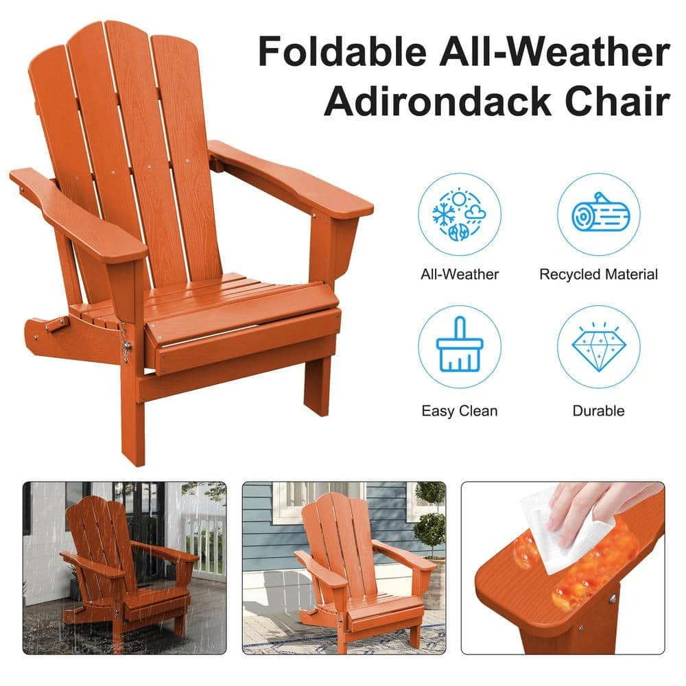 HDPE Classic Orange Folding Plastic Adirondack Chair (1-Pack)