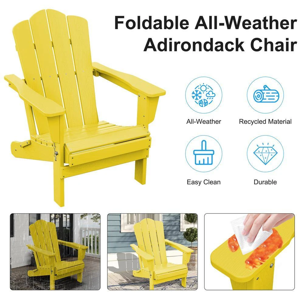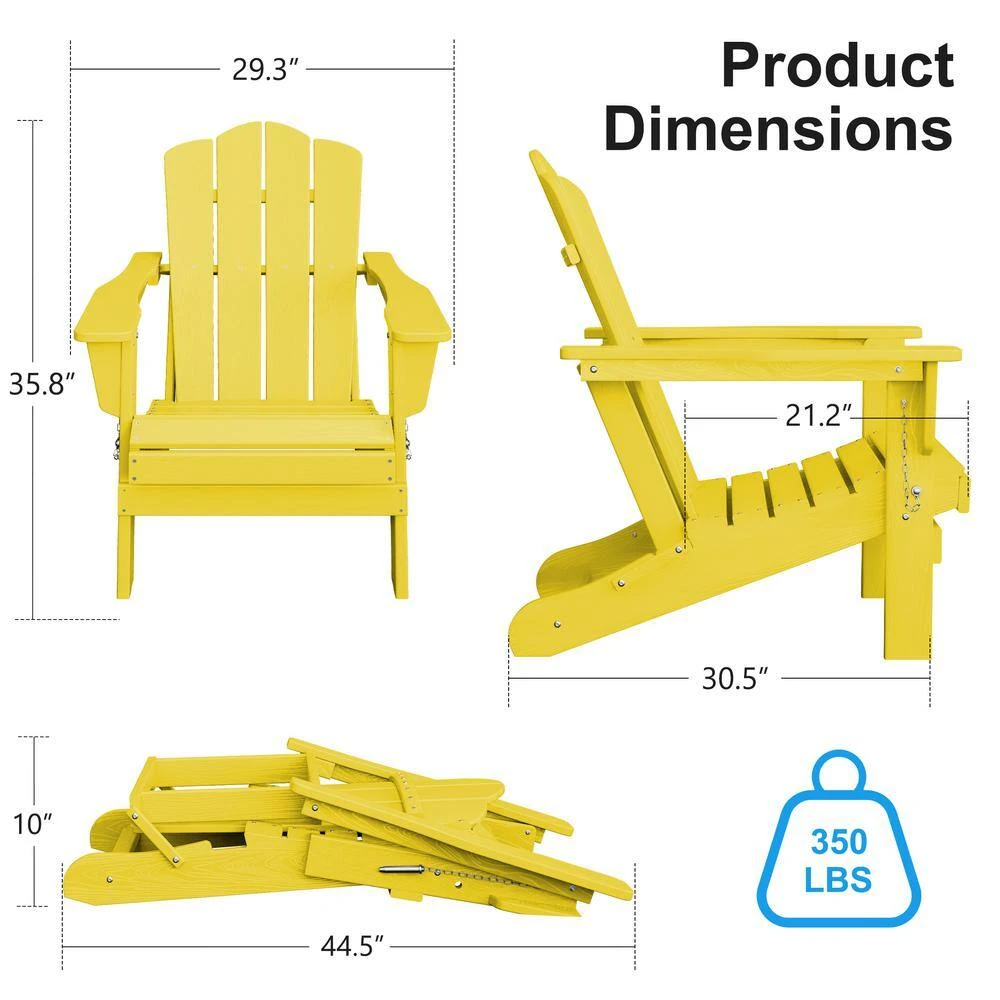 This product adopts improved resin material, new HDPS plastic, both with wood texture and plastic durability, more beautiful outlooking than the general high-density polypropylene material on the market. It shows good performance on waterproof, all weather-resistant, easy to clean, and could leave outside for years without cracking or peeling. More importantly, it’s foldable feature allows you to provide great help when you are not using it or when you go out to carry it. The ergonomic design features wide arms, a curved seat, and high back support, you can fully relax in it, or enjoy a pleasant time with your family and friends. No matter in your garden, backyard, or patio, the chairs all fit well with other furniture. And it is also the perfect partner for the firepit as the outdoor seat sets. All contents are packed in 1-box. Light assembly required.