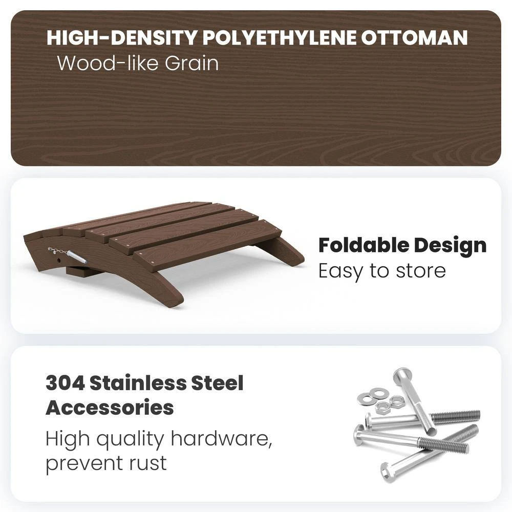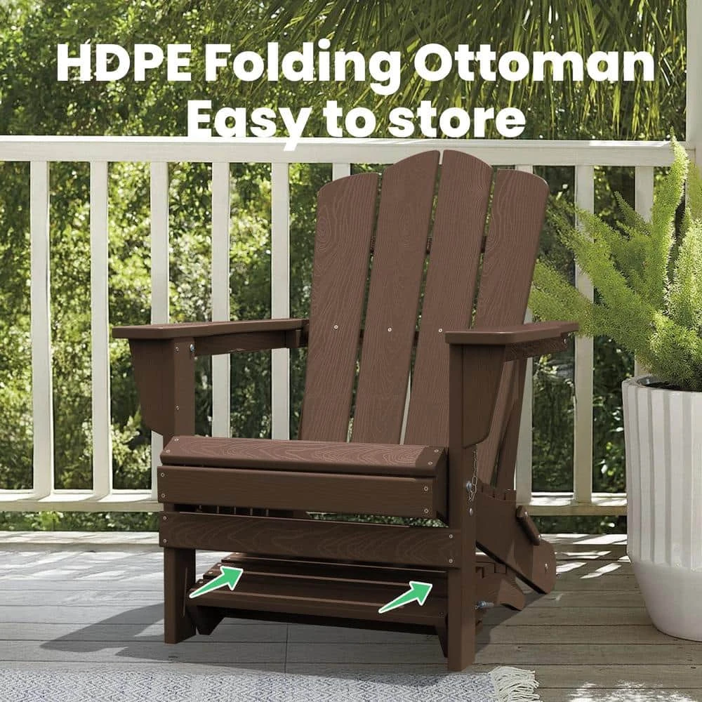 HDPE Folding Plastic Outdoor Ottoman For Adirondack In Brown