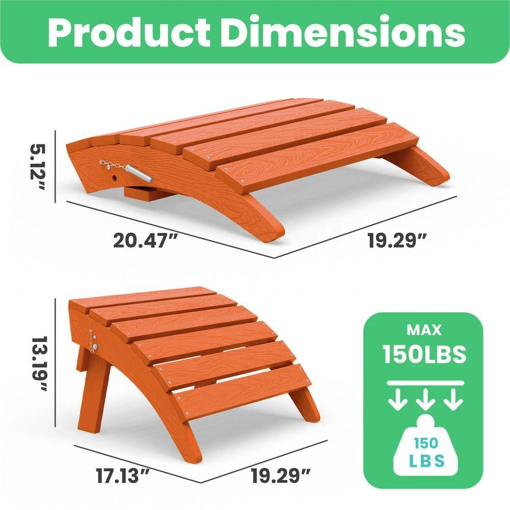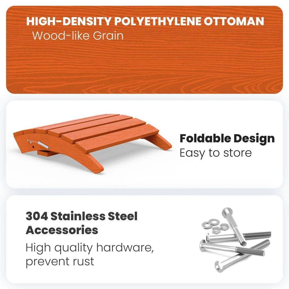 HDPE Folding Plastic Outdoor Ottoman For Adirondack In Orange