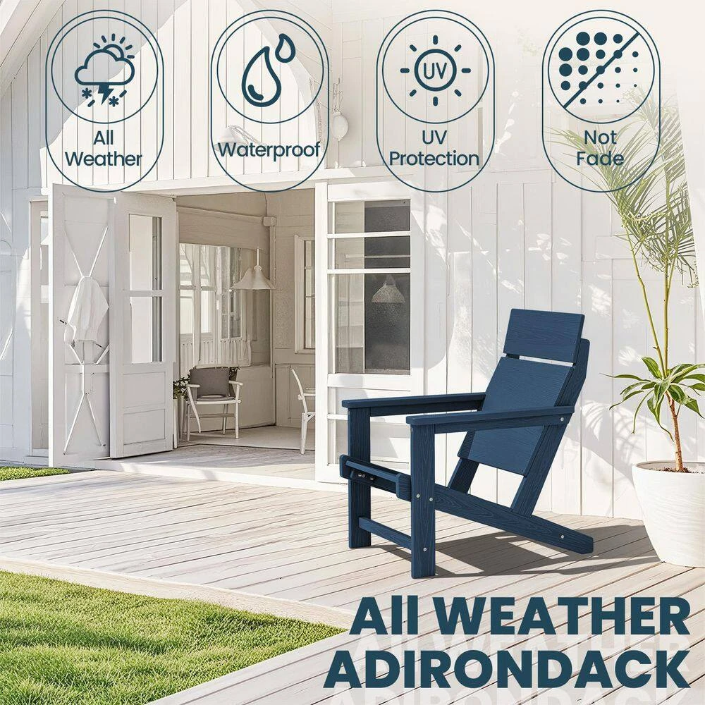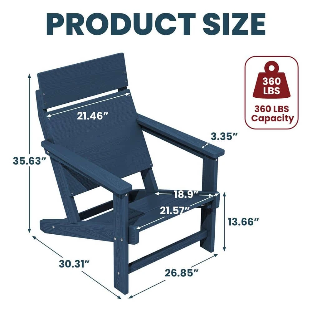 This wider Adirondack chair is available in a variety of colors to add a splash of color to your outdoor space, the vintage finish and classic styling is a great choice for your decor. The waterproofing properties protect the product itself and extend the time frame of use, and the ergonomically curved seat maximizes the comfort of the user. This stylish patio chair will become a staple in your backyard, patio, porch, lake house and mountain cabin.