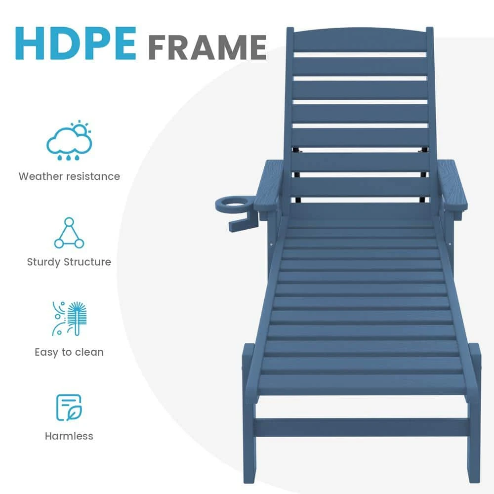 HDPE Navy Adjustable Outdoor Lounge Chair (1-Pack)
