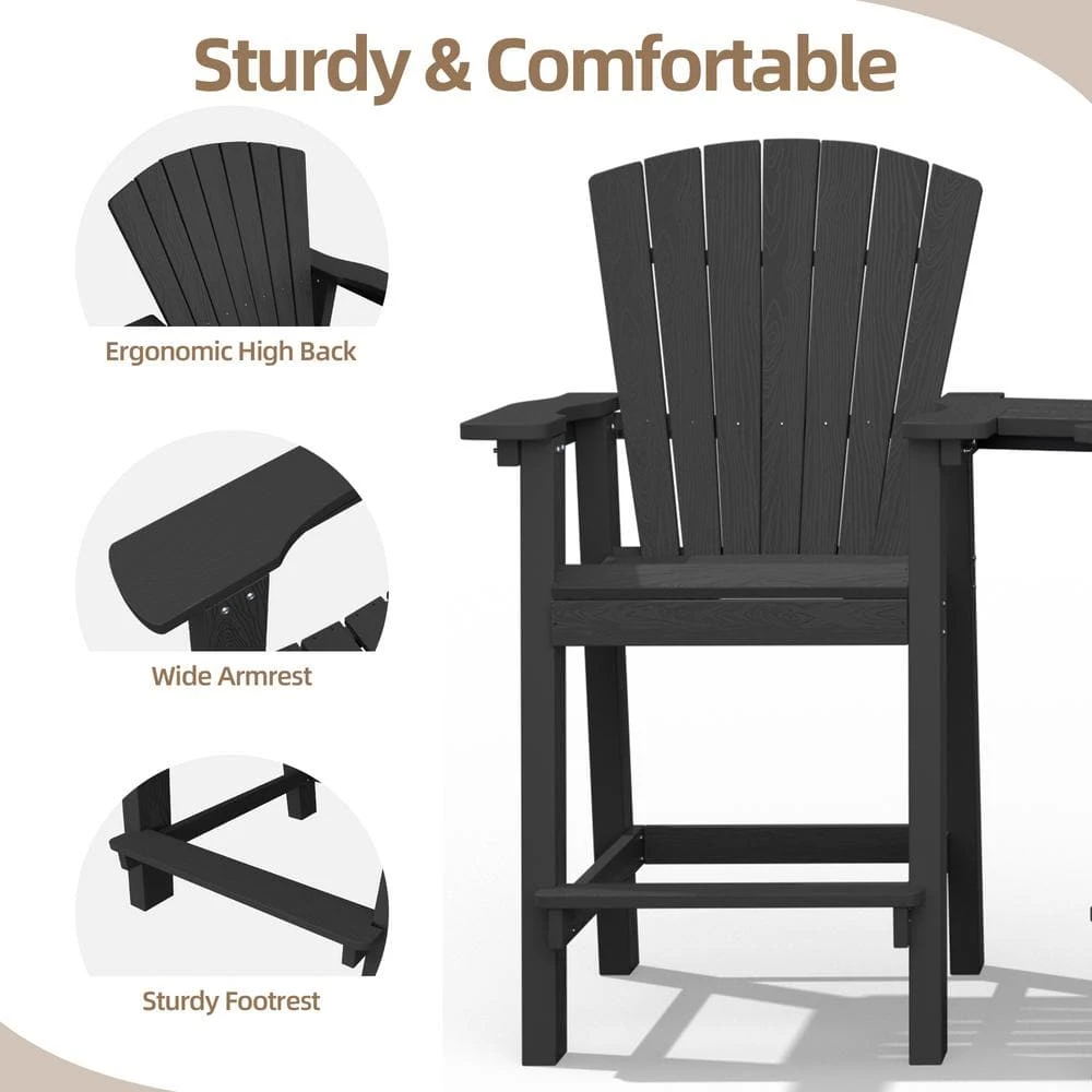 You may need a tall Hatto to see beautiful views in your decks or balconies. It comes with 2 chairs and a center connecting table. The chairs can be used separately also by removing the connecting table. This all-weather balcony tall Adirondack chair set fits well into any outdoor space, so you and a companion can relax and enjoy quality 1-on-1 time in comfort and style.