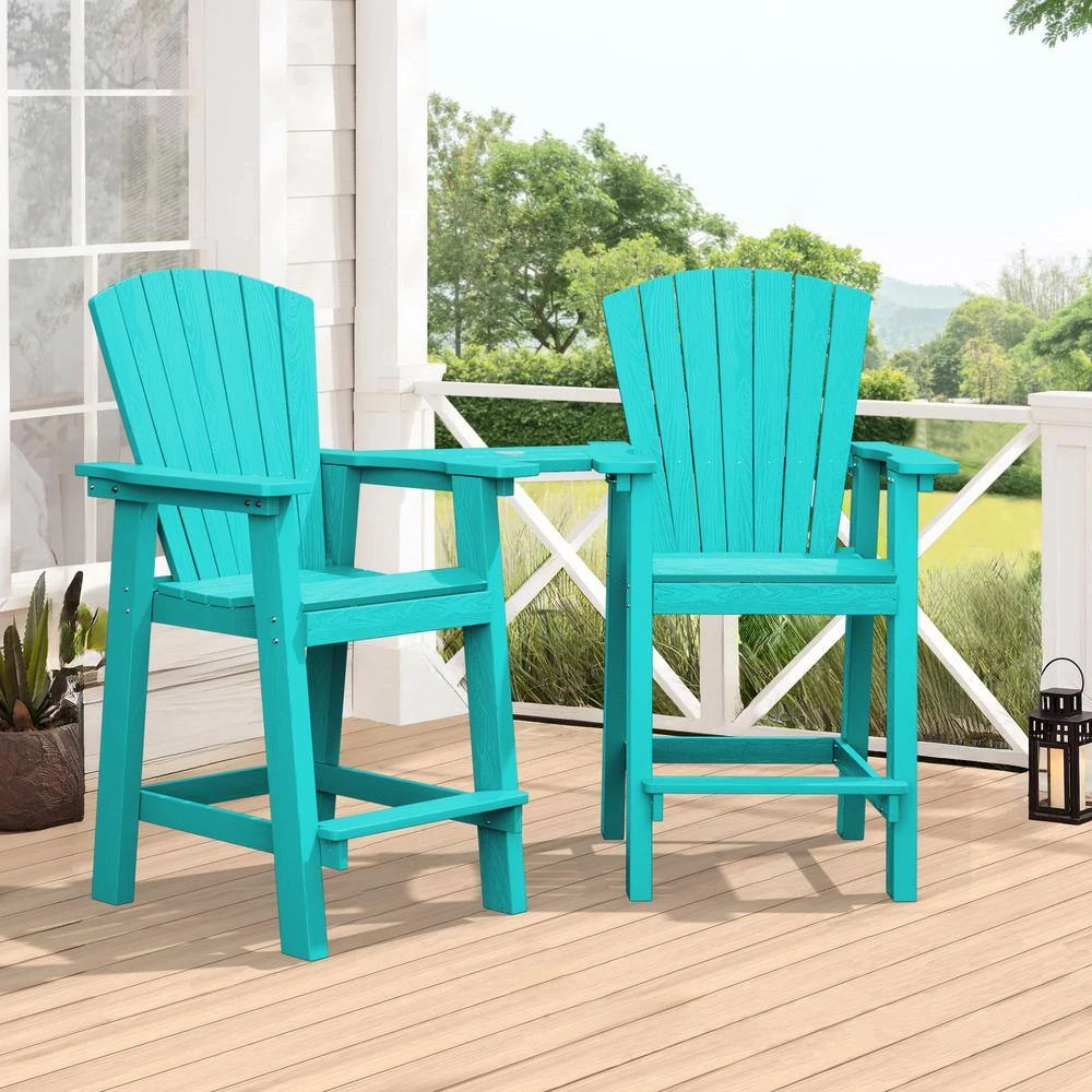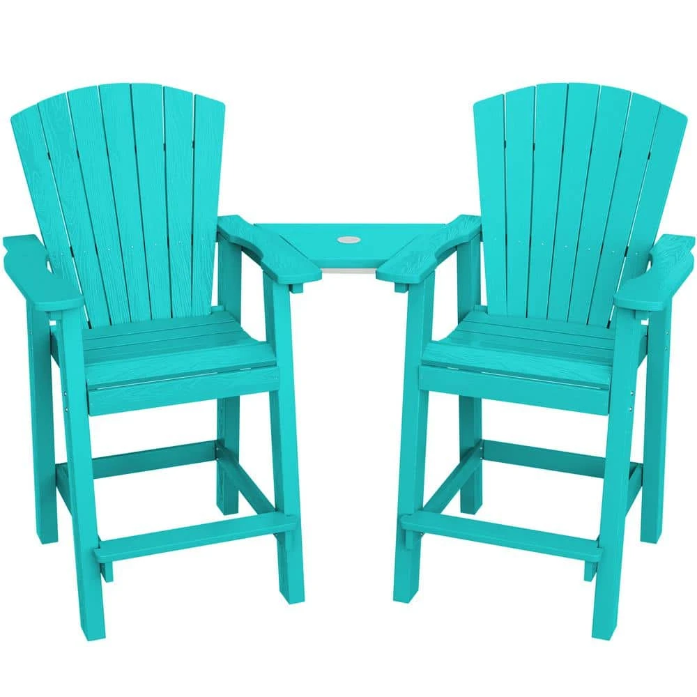 You may need a tall Hatto to see beautiful views in your decks or balconies. It comes with 2 chairs and a center connecting table. The chairs can be used separately also by removing the connecting table. This all-weather balcony tall Adirondack chair set fits well into any outdoor space, so you and a companion can relax and enjoy quality one-on-one time in comfort and style.
