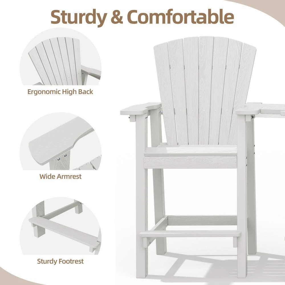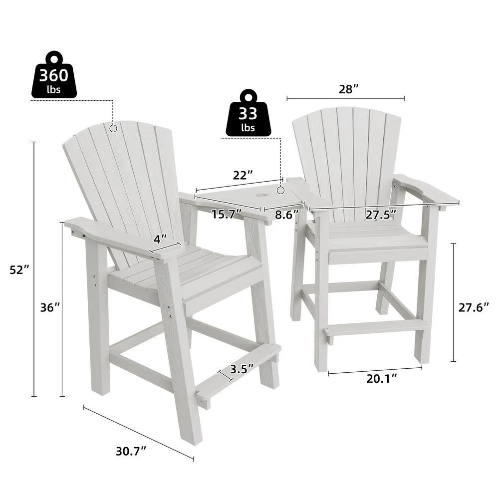 You may need a tall Hatto to see beautiful views in your decks or balconies. It comes with 2 chairs and a center connecting table. The chairs can be used separately also by removing the connecting table. This all-weather balcony tall Adirondack chair set fits well into any outdoor space, so you and a companion can relax and enjoy quality one-on-one time in comfort and style.