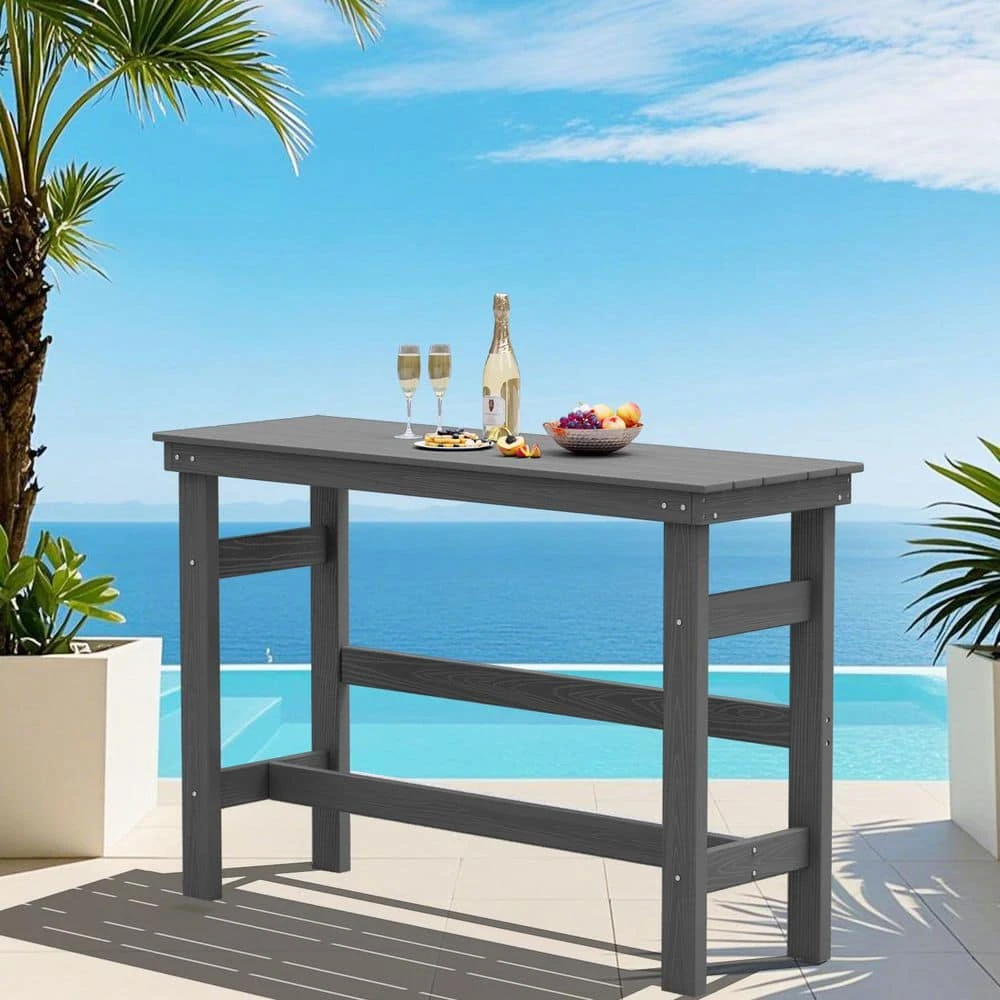 HDPE Rectangle Plastic Bar Height Outdoor Dining Table In Gray