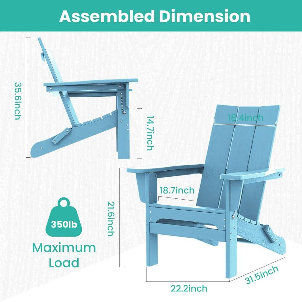 Light Blue Classic Folding HDPE Plastic Adirondack Chair (1-Pack)