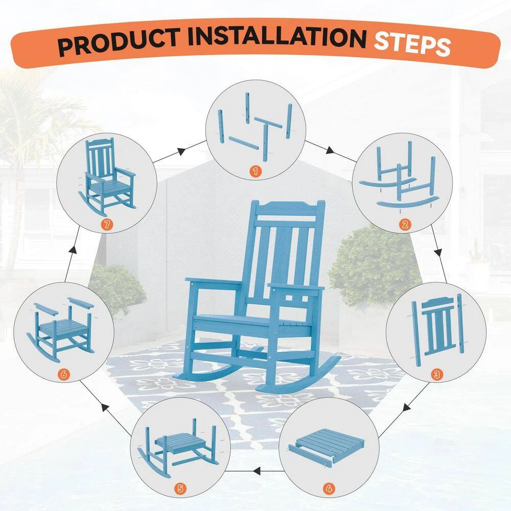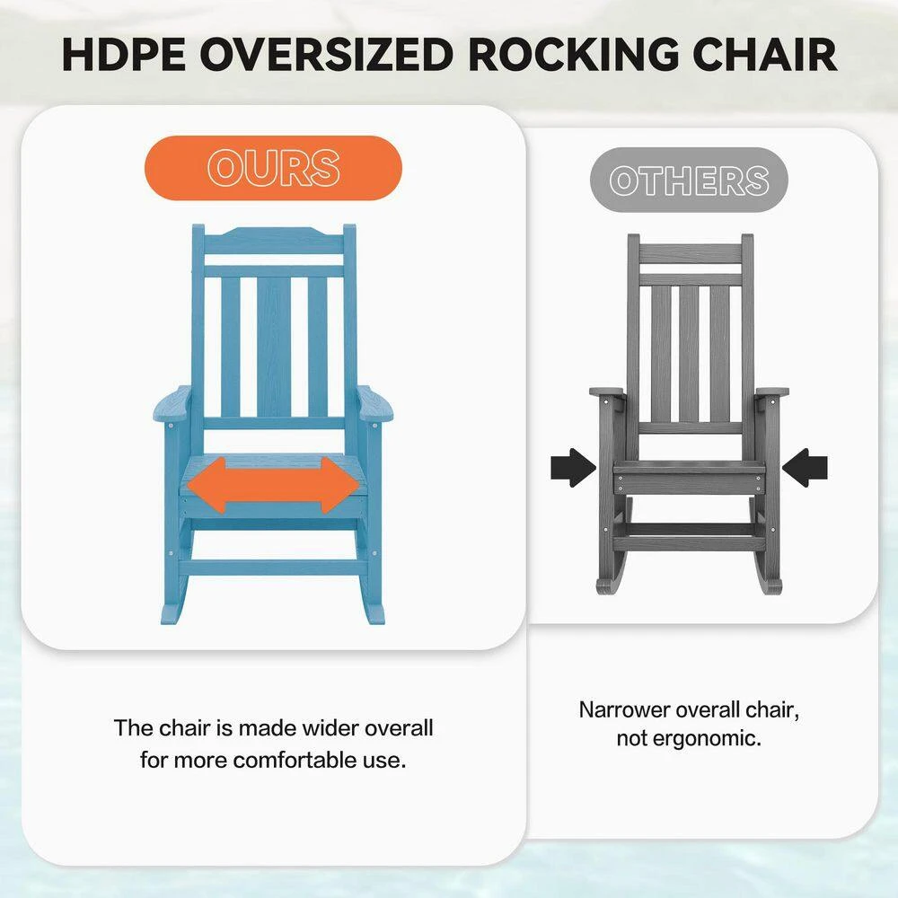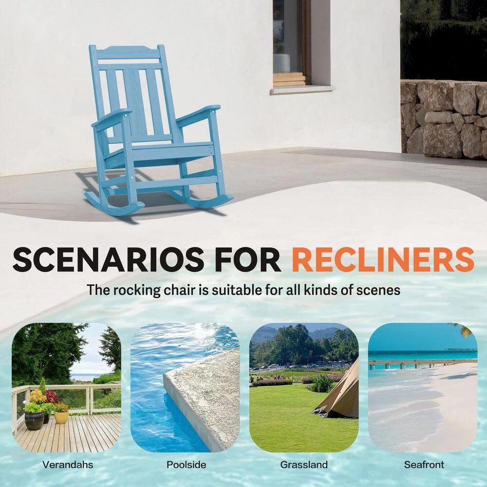 Light Blue HDPE Plastic Adirondack Chair Outdoor Rocking Chair For Patio And Garden (1-Pack)