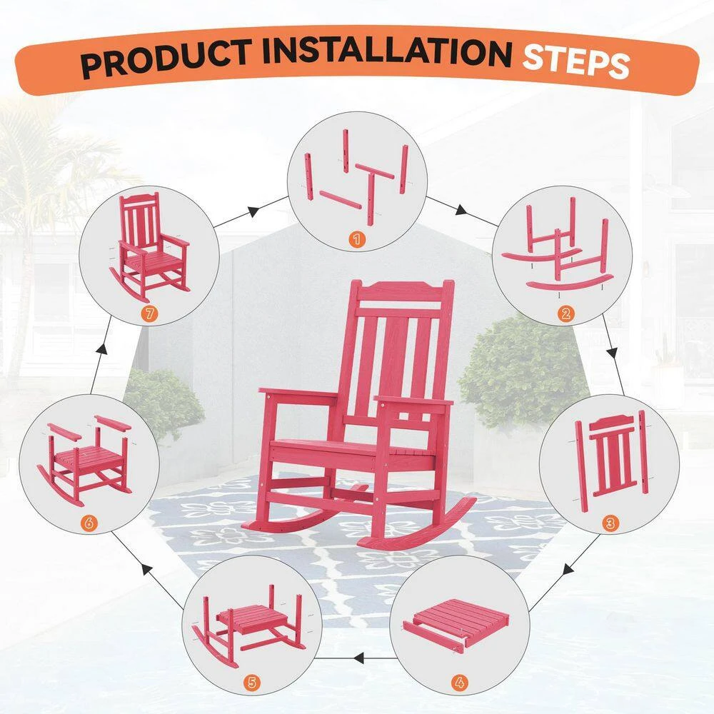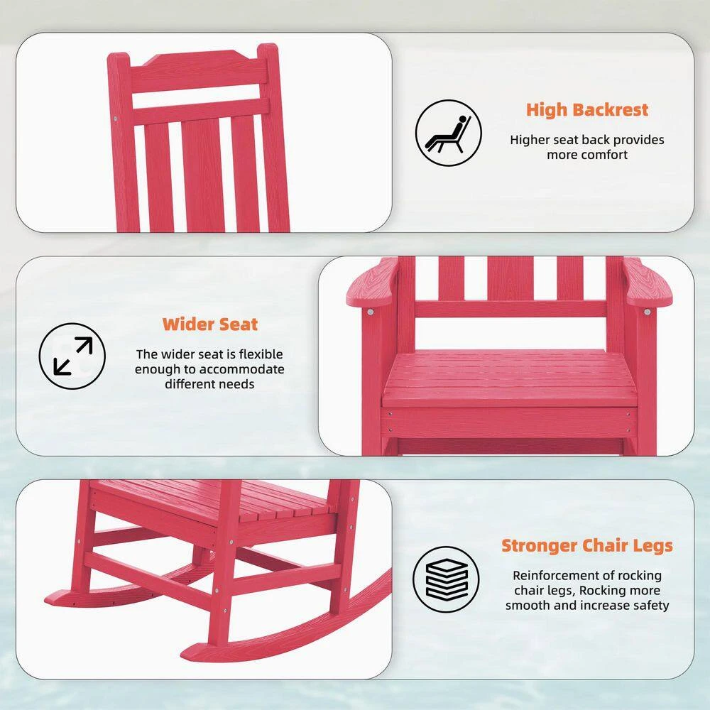 Light Pink HDPE Plastic Adirondack Chair Outdoor Rocking Chair For Patio And Garden (1-Pack)