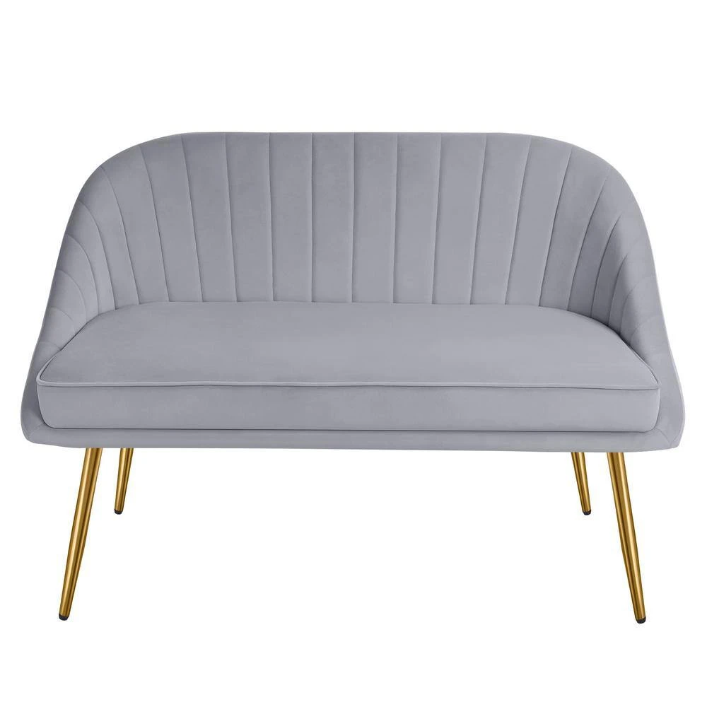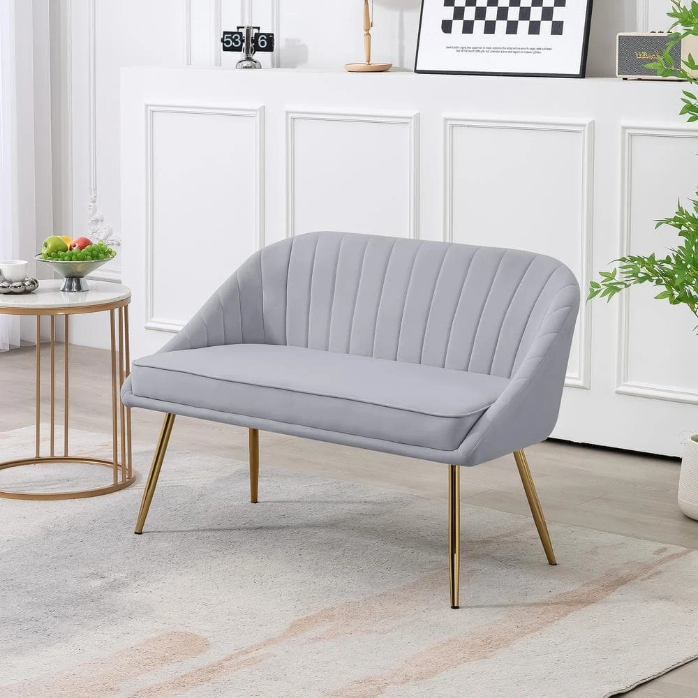 Modern 48 In. Golden Base Velvet Tufted 2-Seats Grey Loveseat Sofa For Living Room Furniture Sets