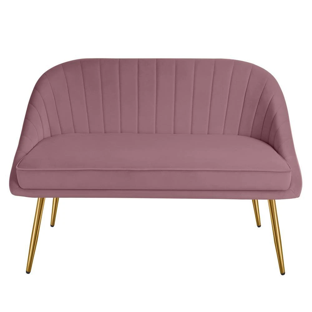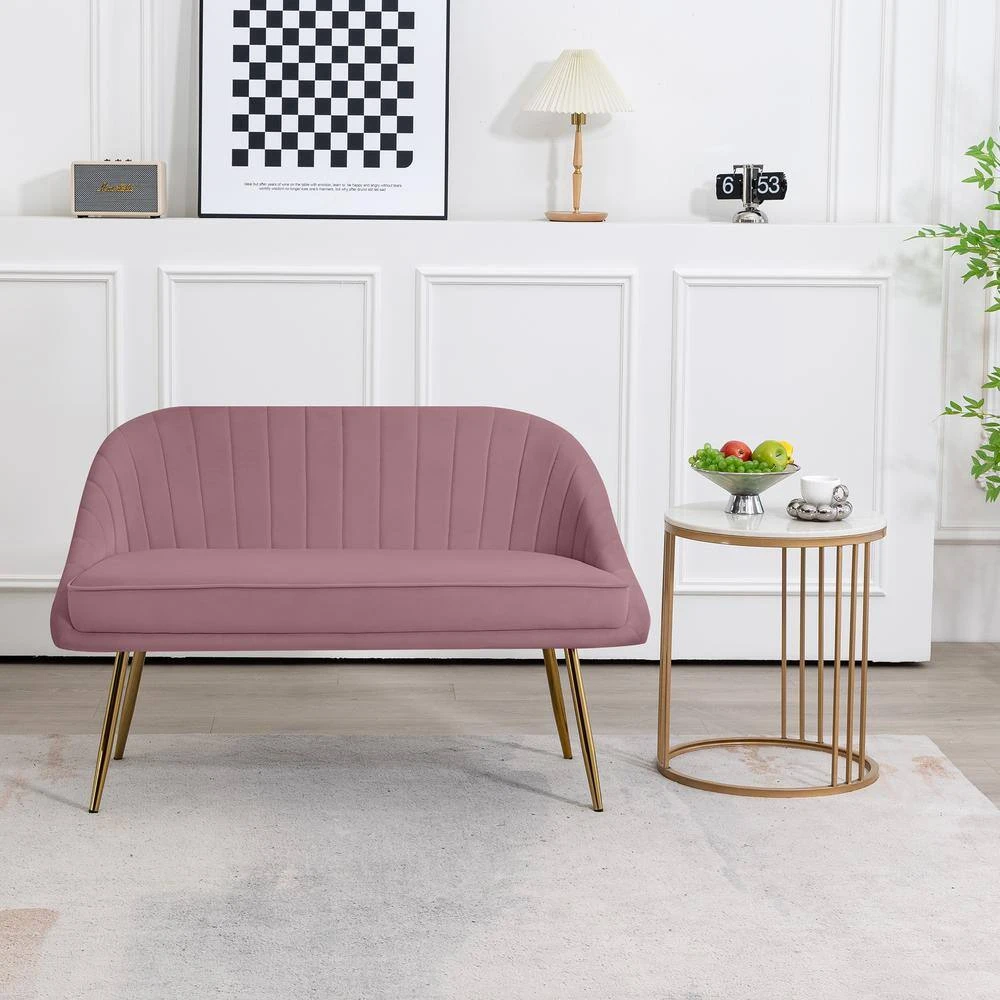 Modern 48 In. Golden Base Velvet Tufted 2-Seats Pink Loveseat Sofa For Living Room Furniture Sets