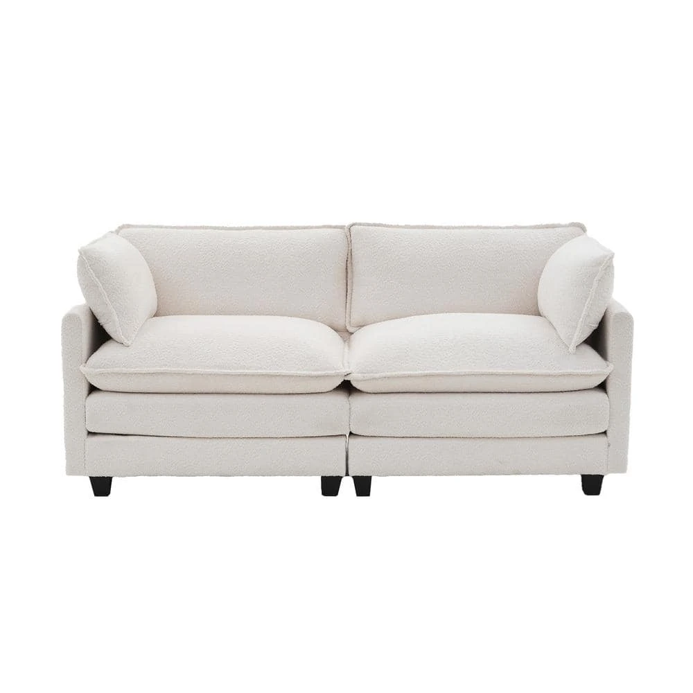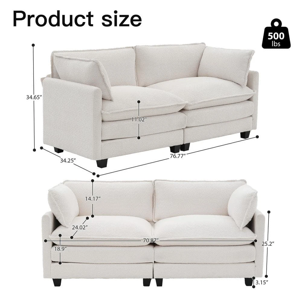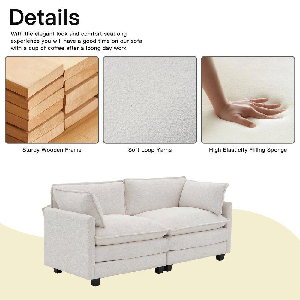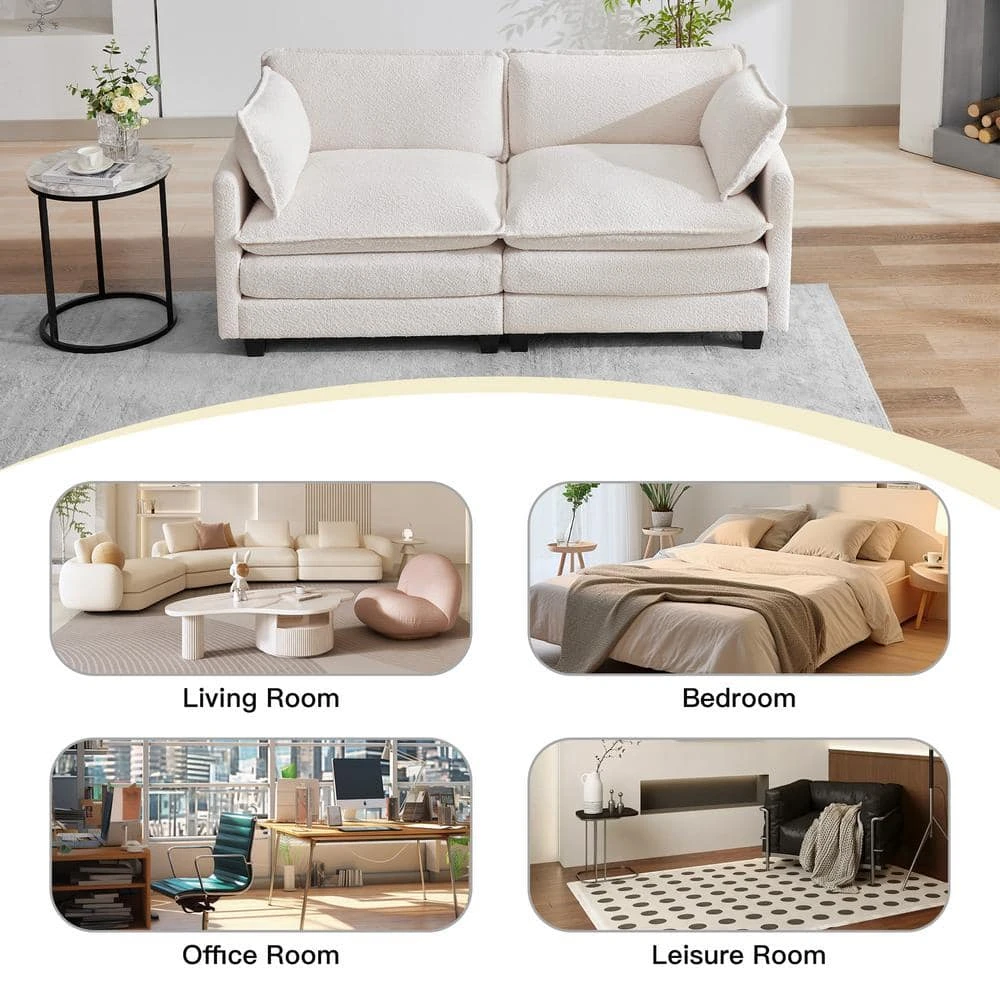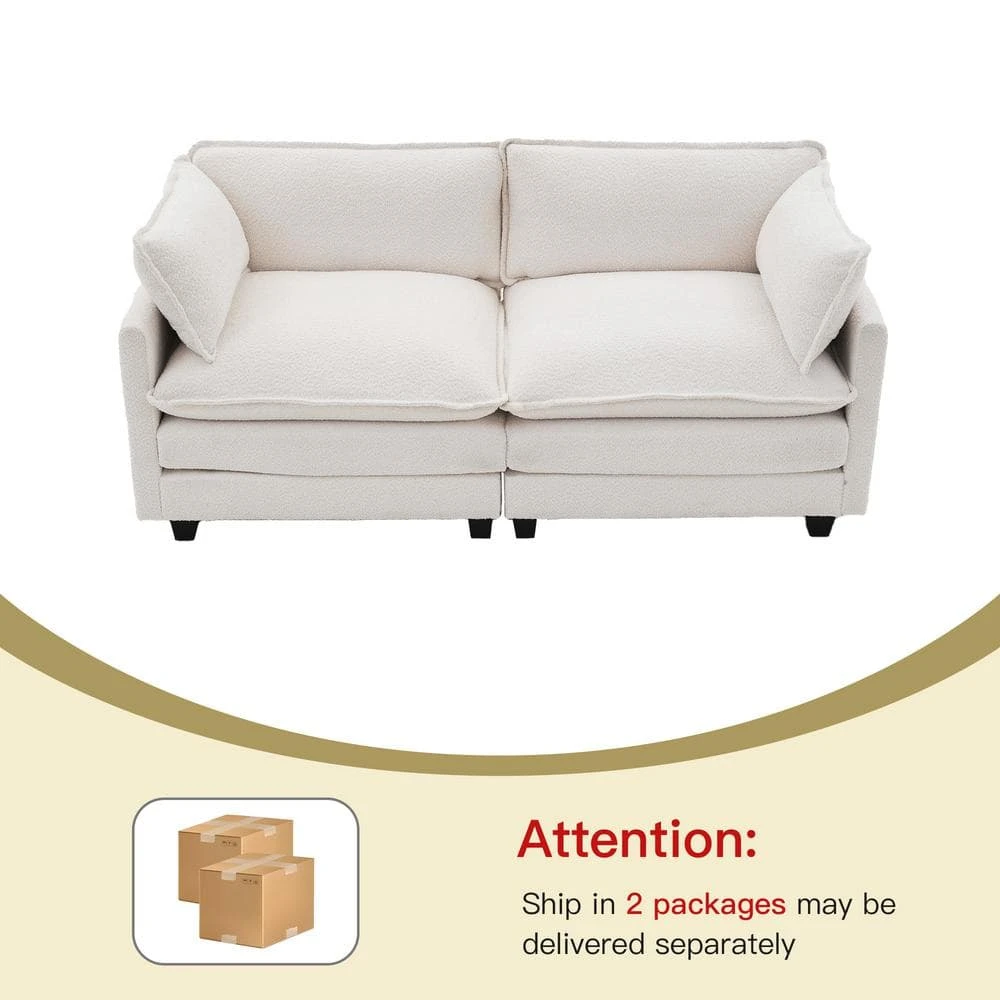 Modern 76.77 In. Beige Looped Velvet Loveseat With Two Pillows For Living