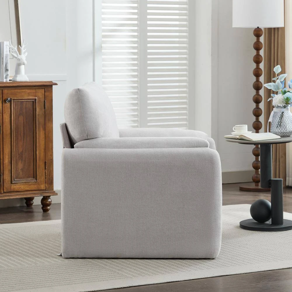 Modern Grey Chenille Oversized Wood Accent Outdoor And Indoor Lounge Chair With Armrest Cushion For Living Room