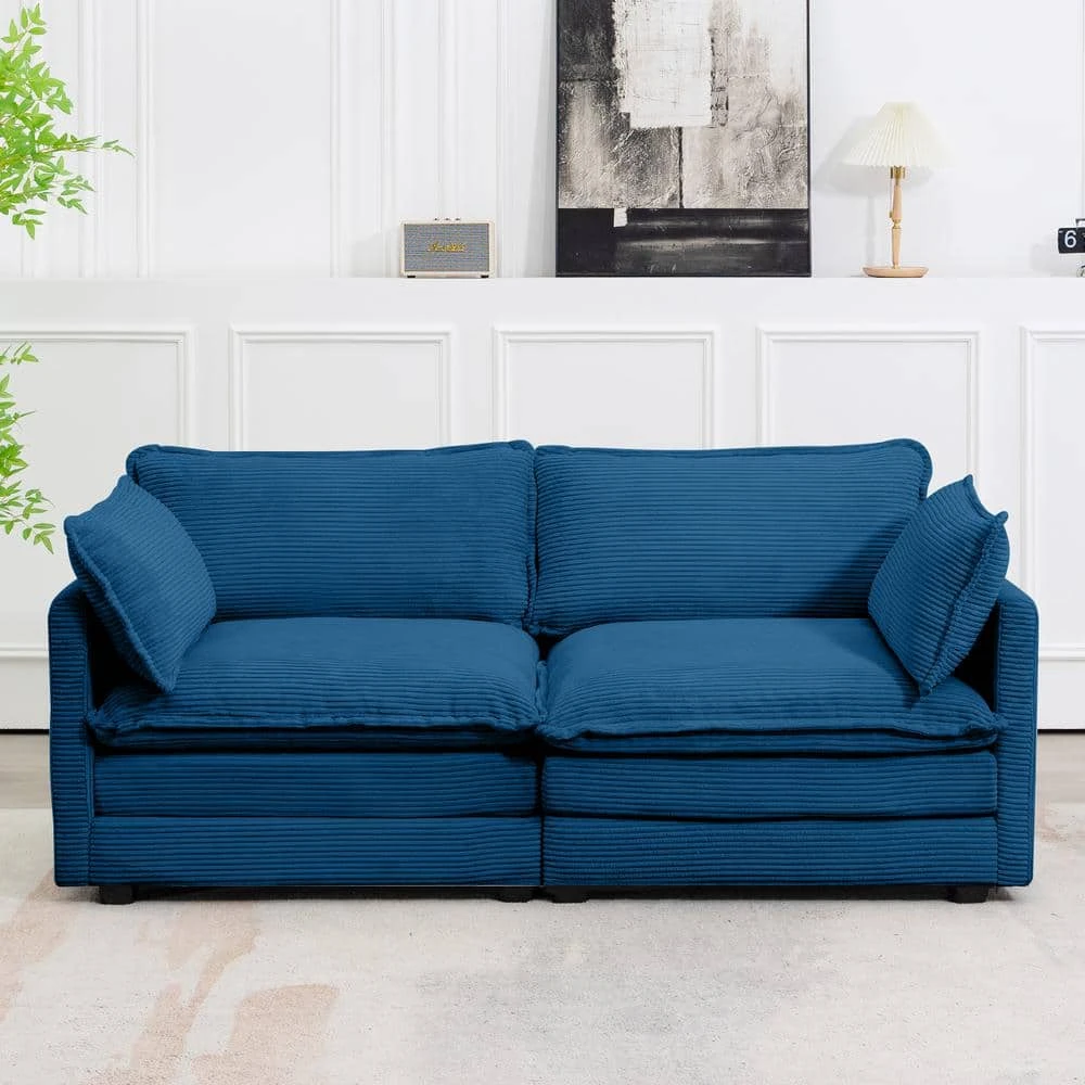 Modern Navy Corduroy Loveseat With Two Pillows For Living
