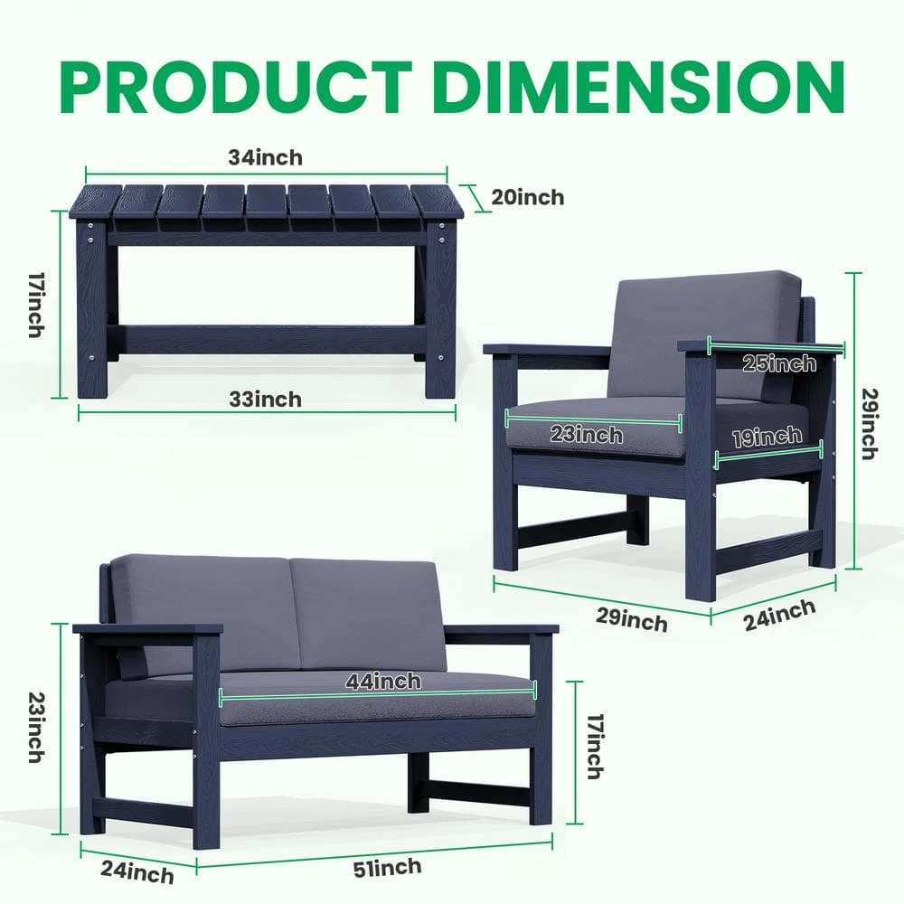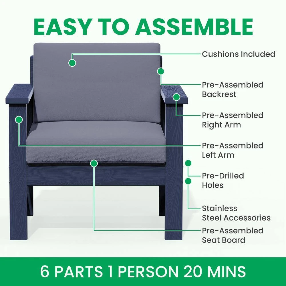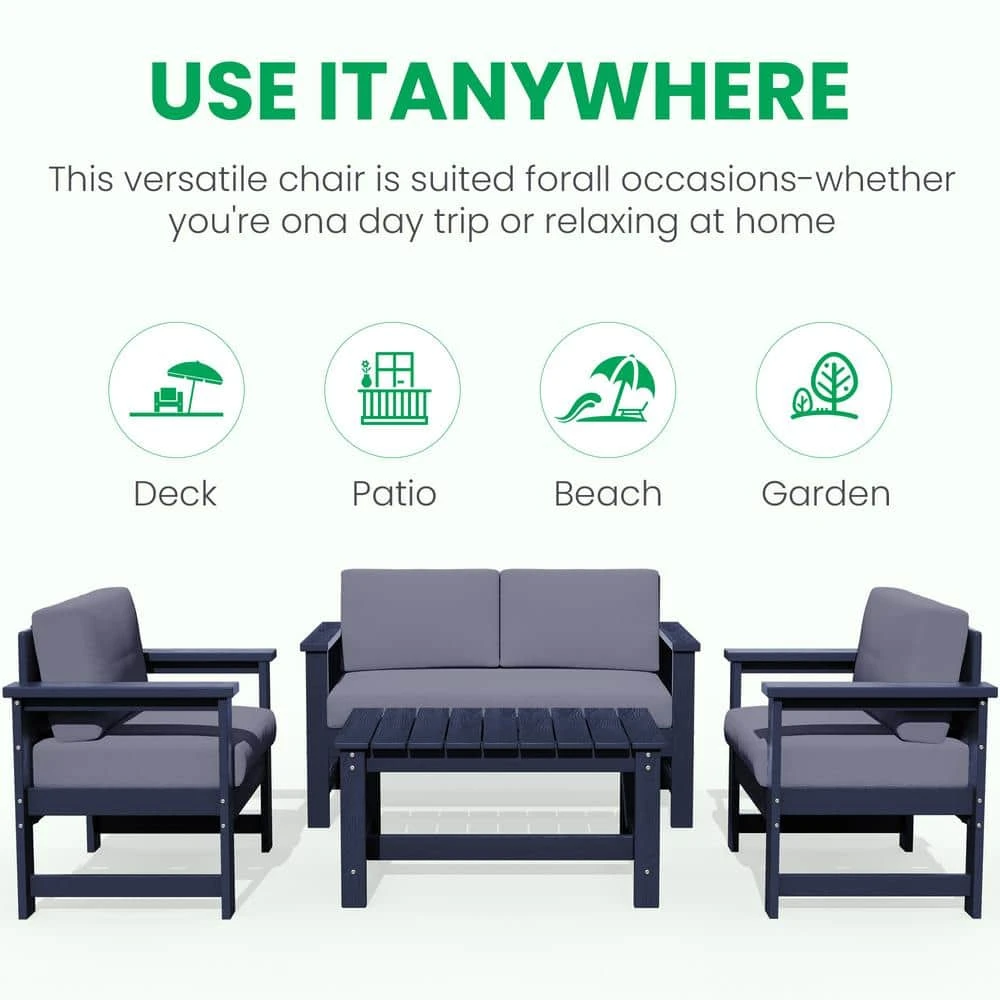 Navy 4-Piece HDPE Plastic Patio Conversation Set With Grey Cushions