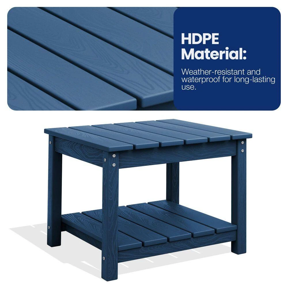 Navy Blue HDPE 2-Tier Outdoor Side Table, Weather-Resistant Patio Coffee Table