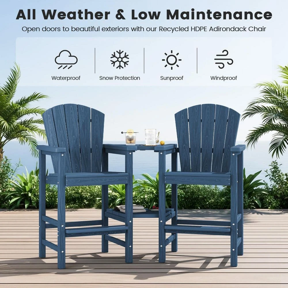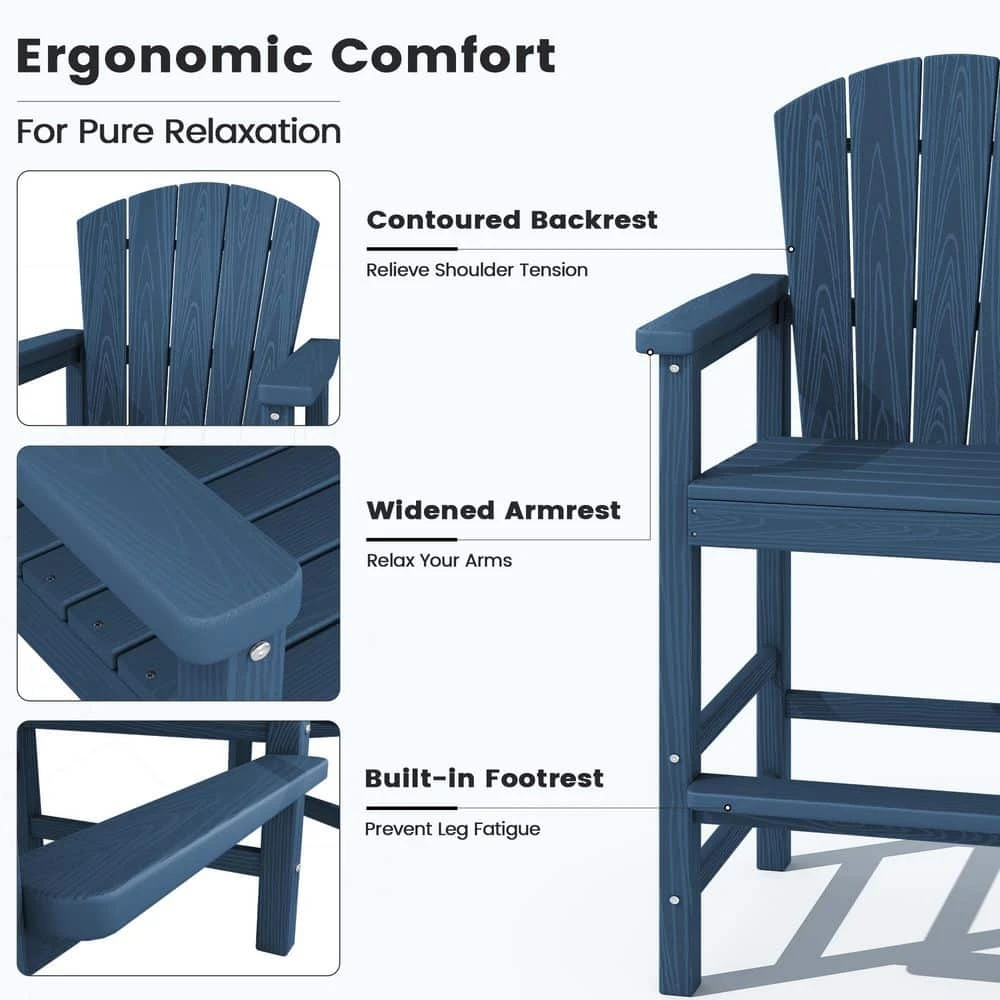 Unwind in style with this Adirondack Bar Chair Set, expertly crafted from durable, weather-resistant HDPE. Featuring an ergonomic backrest, widened armrests, and a built-in footrest, this set offers the ultimate in outdoor comfort. The removable double-layer tray includes a 2