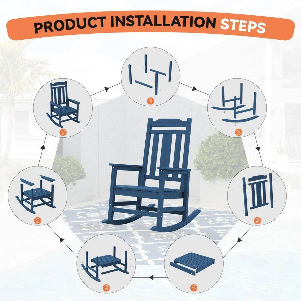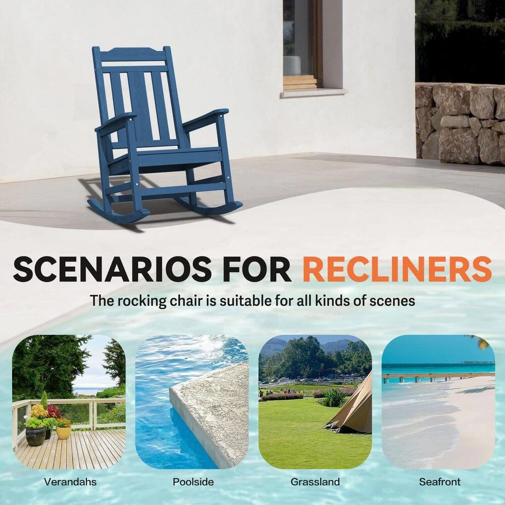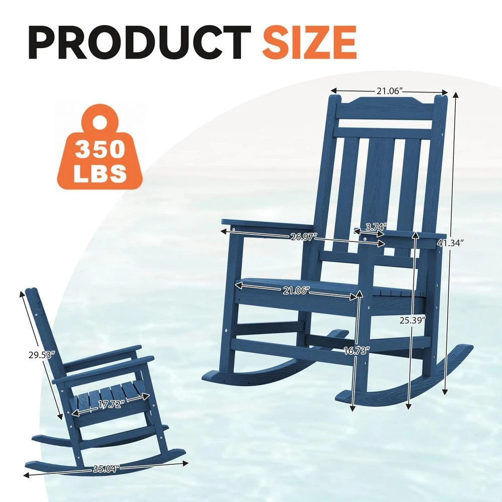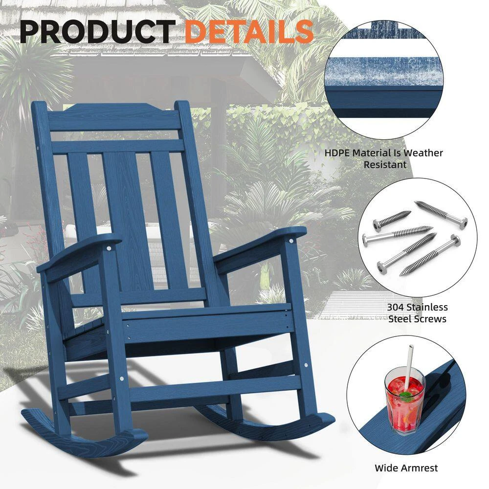 Navy Blue HDPE Plastic Adirondack Chair Outdoor Rocking Chair For Patio And Garden (1-Pack)