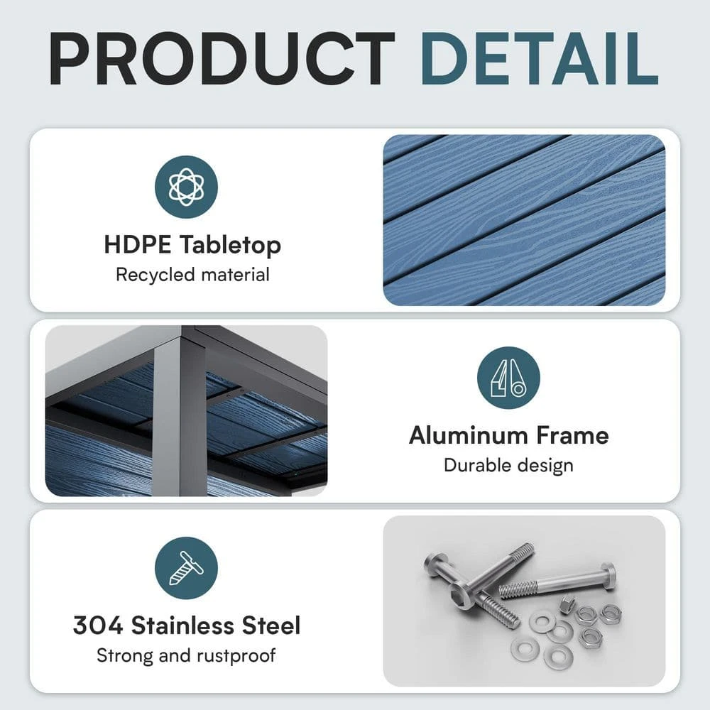 - Weather resistance: crafted from premium HDPE, your tabletop laughs off sun, rain, snow, or spills it won’t crack, peel, or fade like wood or inferior plastics, ensuring vibrant color and structural integrity season after season