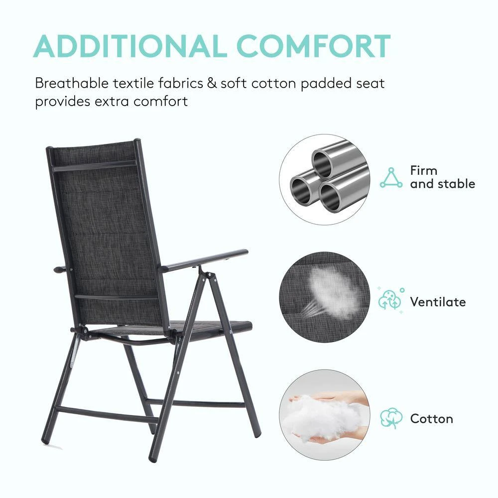 If you want maximum comfort and relaxation, choose this patio folding chair. It has 7 adjustable backrest positions, allowing you to choose the right angle for any need. with a high-quality iron frame and upholstered seat, the chair is very sturdy and has a weight capacity of 400 lbs. Comfortable armrests and a high backrest keep you cozy.
