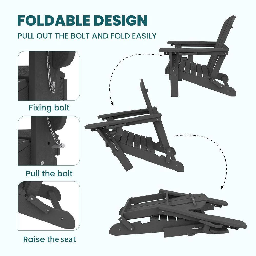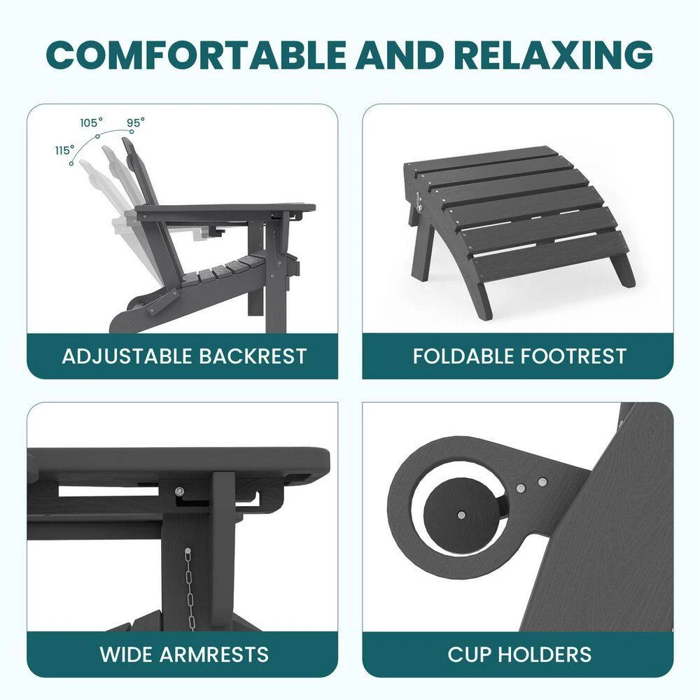 Outdoor HIPS Plastic Patio Chat Set Gray Adirondack Chairs With Side Table And Folding Ottoman Set Of 5-Piece