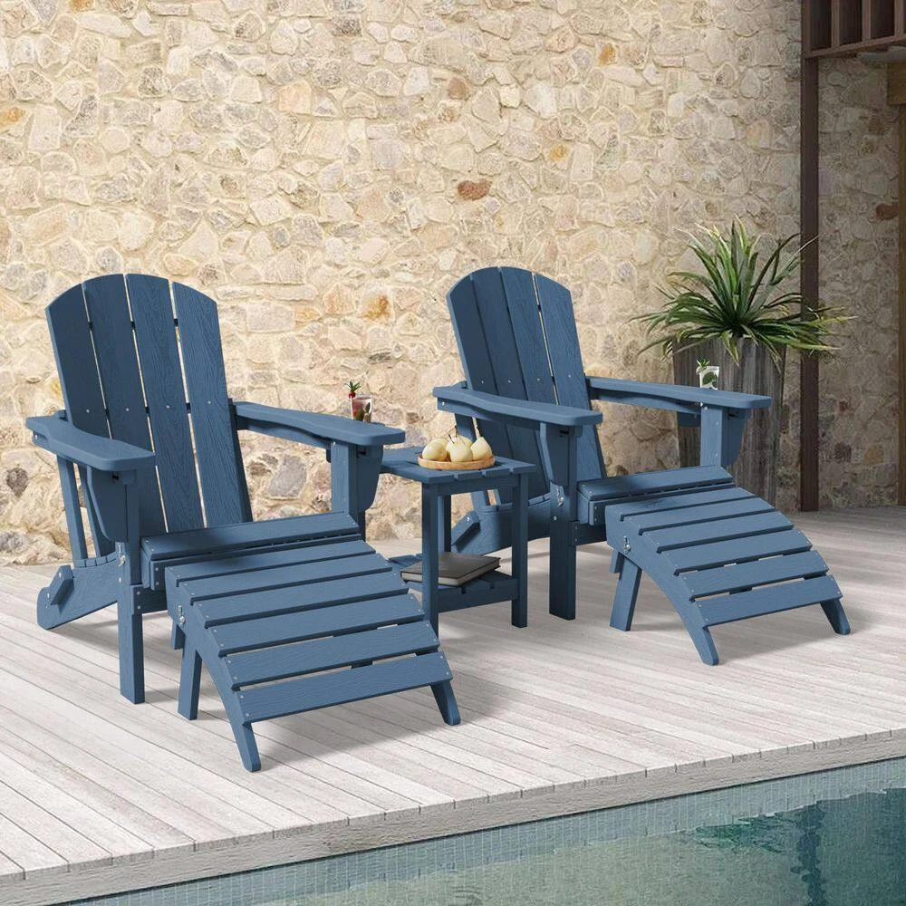 - 5-piece set: included 2 adirondack chairs, 2 ottoman and 1 patio end table, this 5-piece set allows you to spend leisure time in lawn, garden, patio, porch