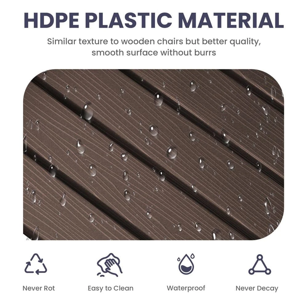 - Durable and sturdy: made of HDPE (high density polyethylene), the patio rocking chair is all-weather resistant, fade-proof and waterproof, the HDPE material is not susceptible to chipping, cracking or rotting, which remedies the limitation brought by other materials like polystyrene, also the attached stainless steel screws render this chair firmer and long lasting.