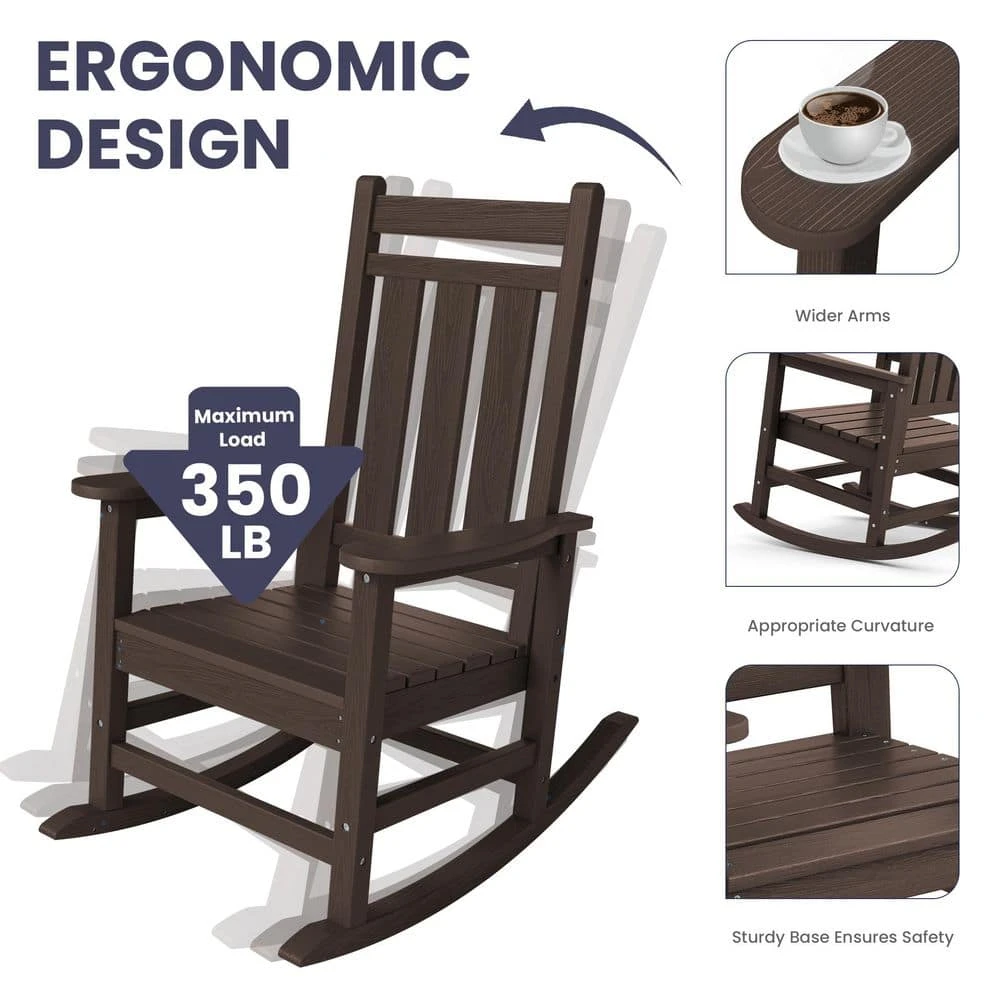 - Colorful Options: Our diverse range of colors allows this rocking chair to blend seamlessly with a variety of outdoor decor styles, while also allowing you to express your individuality.
