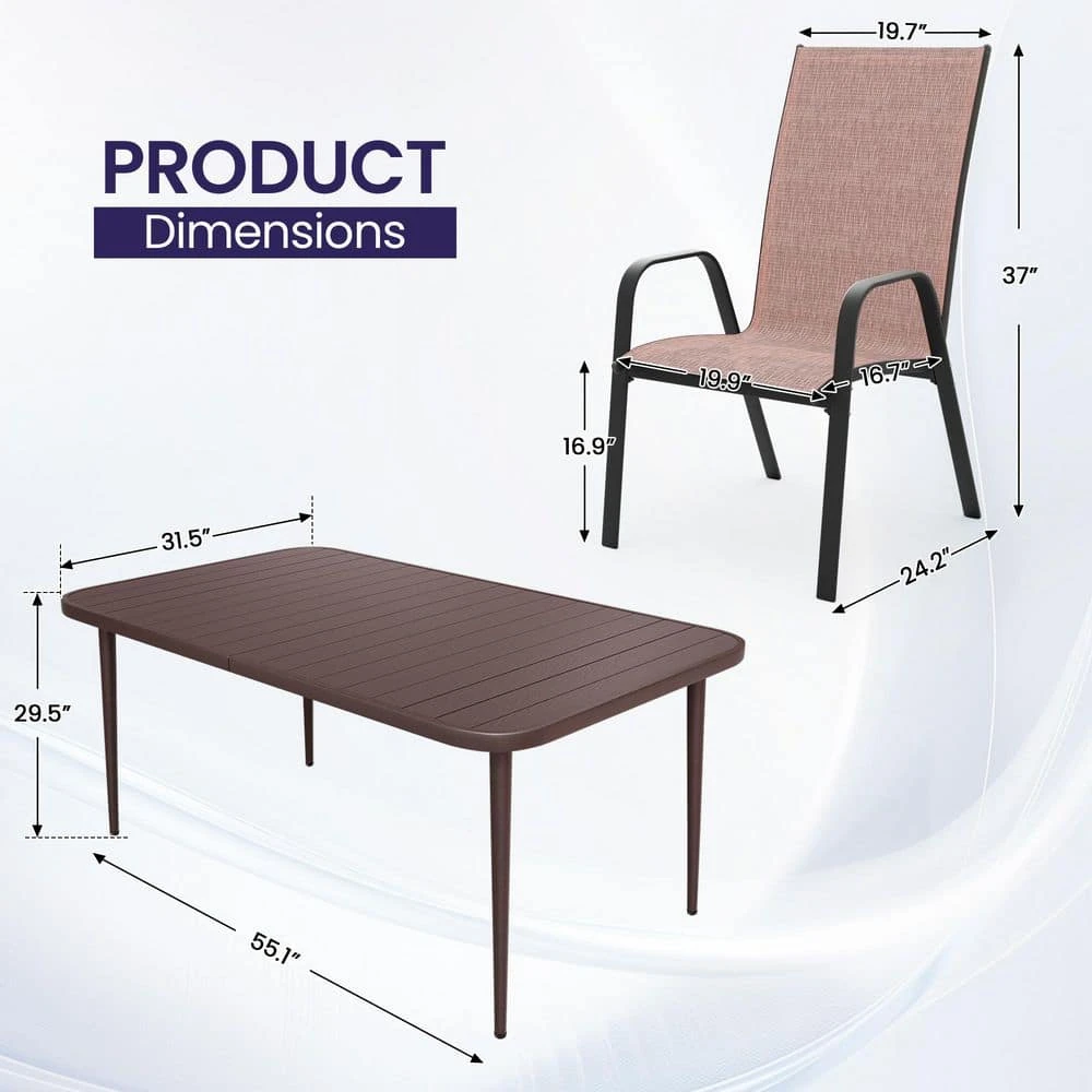 - Spacious dining table: the patio dining table is measured 55.1 in. D x 31.4 in. W x 29.5 in. H, which can holds up to 220 lbs. providing enough room to accommodate meals, drinks, and table decor