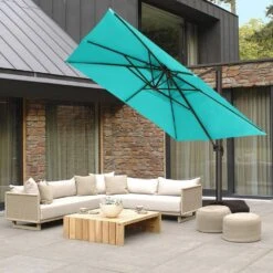 10 Ft. X 10 Ft. Square Outdoor Patio Cantilever Umbrella With Tilt In Peacock Blue