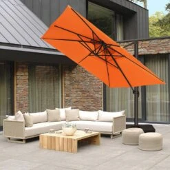 10 Ft. X 10 Ft. Square Cantilever Patio Umbrella With Weighted Base In Pumpkin