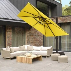 10 Ft. X 10 Ft. Square Cantilever Patio Umbrella With Weighted Base In Yellow