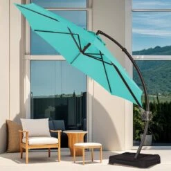 11 Ft. Aluminum Cantilever Offset Hanging Patio Umbrella With Sandbag Base And Cover In Peacock Blue