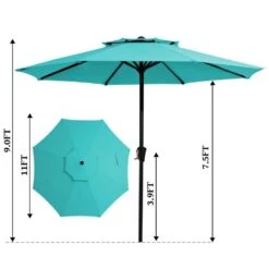 11 Ft. 2 -Tiers 8 Sturdy Ribs Outdoor Market Patio Umbrellas With Crank Lift In Peacock Blue