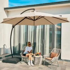 11 Ft.Outdoor Cantilever Offset Umbrella Patio Umbrella With Sandbag And Cover In Beige