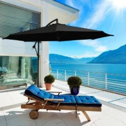 120 In. Outdoor Offset Cantilever Umbrella Patio Umbrella In Black