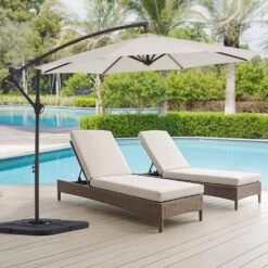 120 In. Outdoor Offset Cantilever Umbrella Patio Umbrella In Off-White