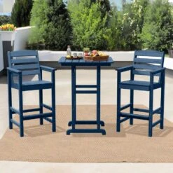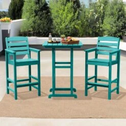 3-Pieces HDPE Plastic Square 46 In. Outdoor Bar Set In Aruba Blue