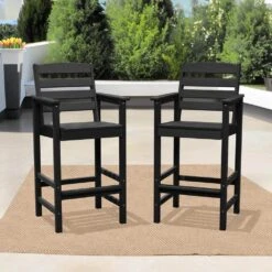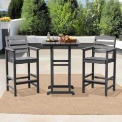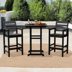 3-Pieces HDPE Plastic Square 46 In. Outdoor Bar Set In Black