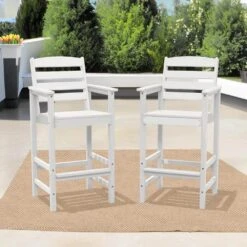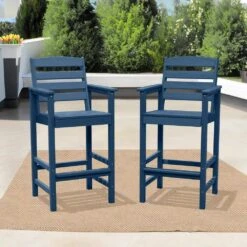 2-Piece HDPE Plastic Adirondack Outdoor Bar Stools In Aruba Blue