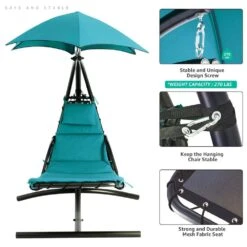 1-Person Swing Egg Chair With Stand And Peacock Blue Cushions For Indoor Outdoor In Peacock Blue