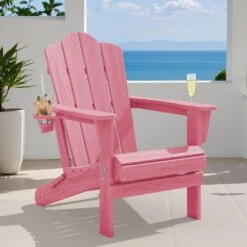 Classic Outdoor HDPE Folding Plastic Adirondack Chair With 2 Cup Holders In Pink (Set Of 1)
