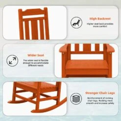 Dark Orange HDPE Plastic Adirondack Chair Outdoor Rocking Chair For Patio And Garden (1-Pack)