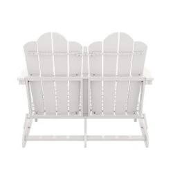 Classic White Plastic Adirondack Chair 2-Person Outdoor Loveseat With Foldable Design